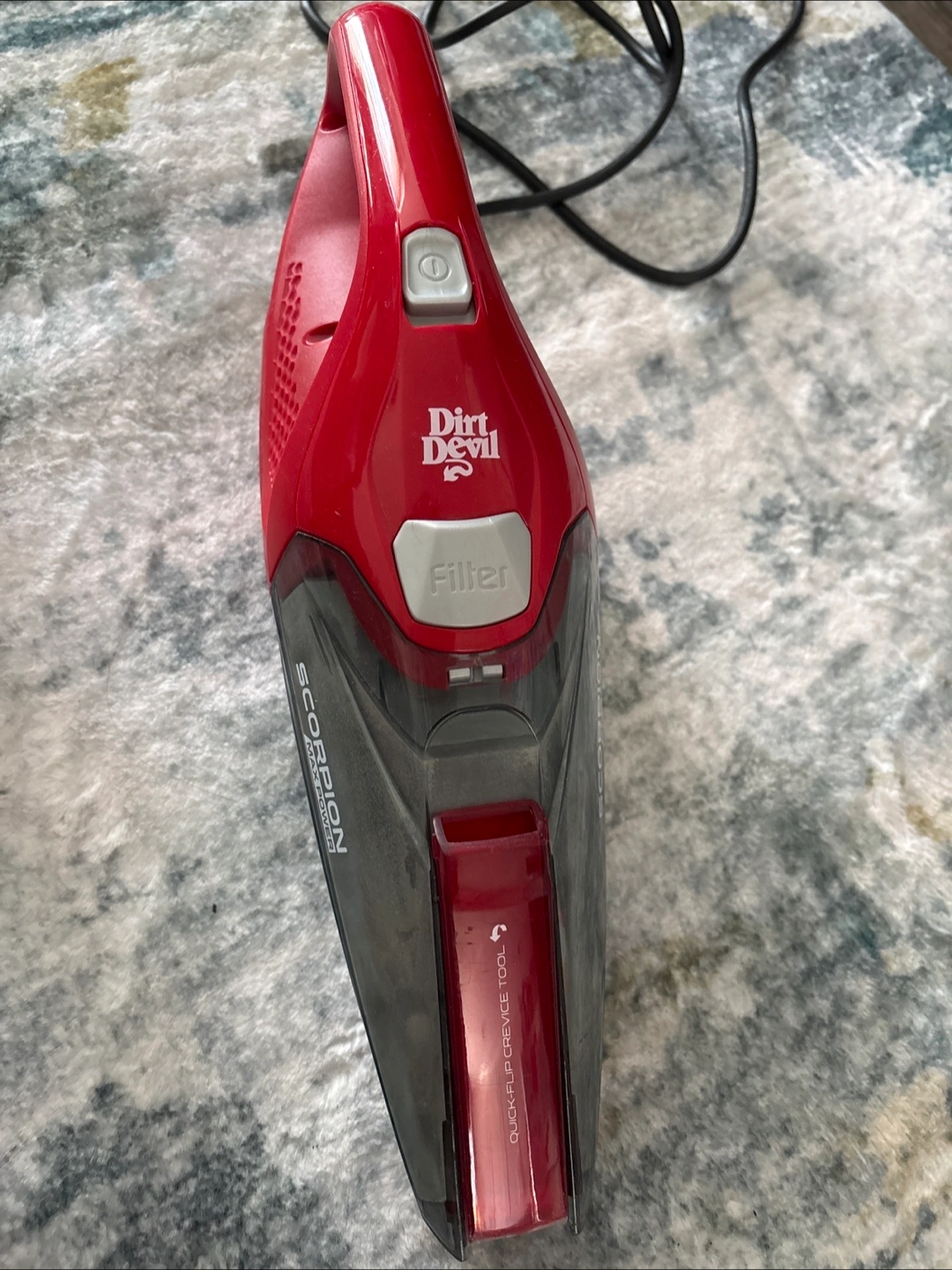 Selling a Dirt Devil Scorpion Max Power handheld vacuum cleaner. Great vacuum for a starting apartment/other small spaces. Requires outlet for use. Moved into bigger space and need a larger vacuum but this was perfect for when I was starting out.