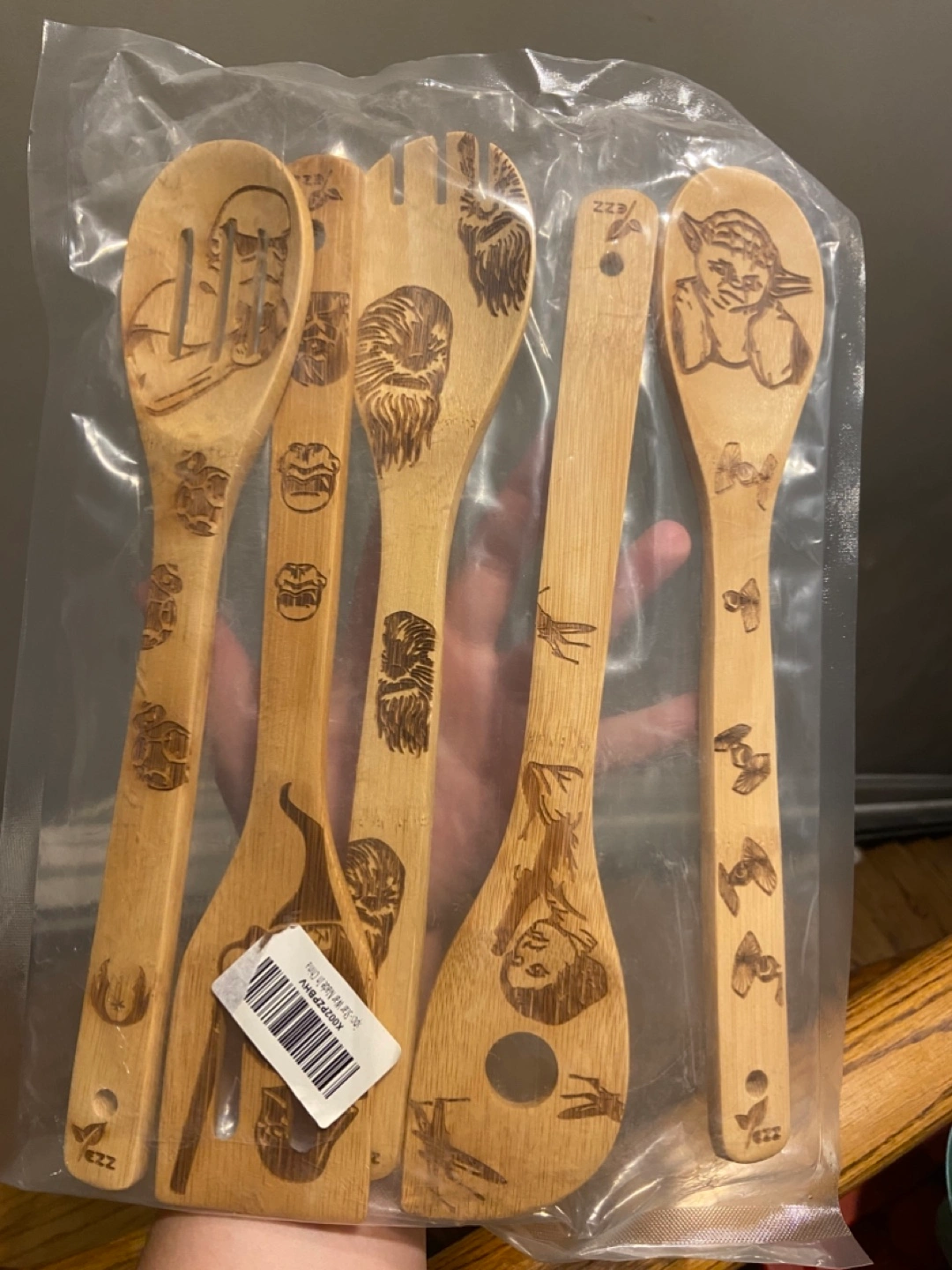 Brand new Star Wars themed bamboo cooking utensil set! These are still in the original packaging and feature fun character designs on each utensil. Perfect for any Star Wars fan who loves to cook!