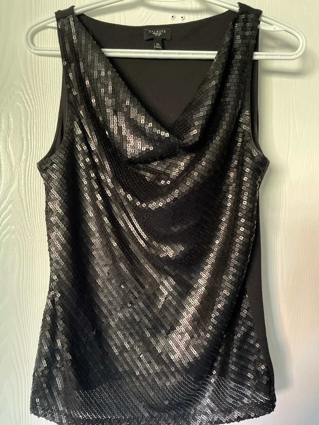 Cute black tank top from Talbots! It's a petite size medium (MP) and has a stylish sequin design. Perfect for dressing up or down!