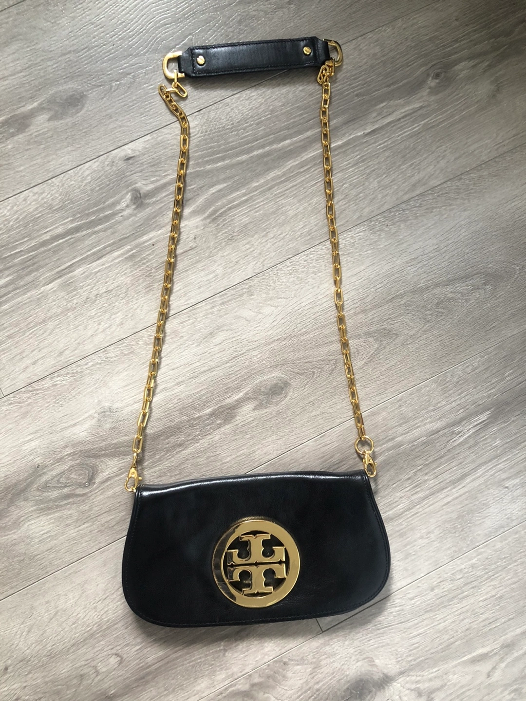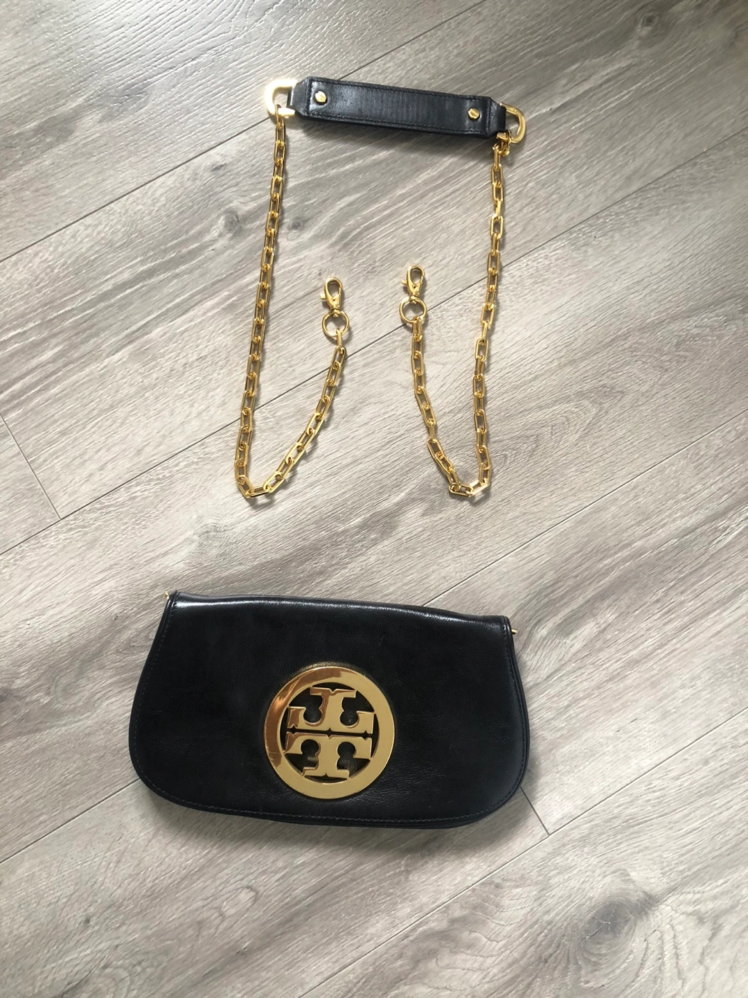 Gold chain strap comes off to become a clutch