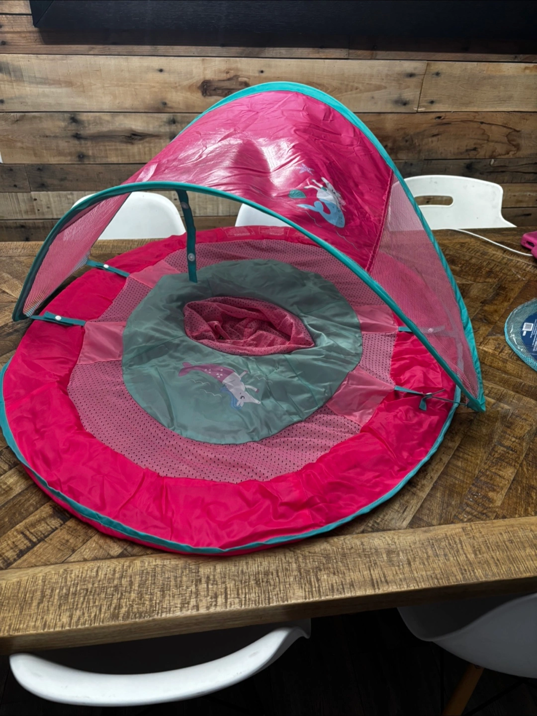 This SwimWays Baby Spring Float with a sun canopy is perfect for little ones aged 9-24 months. It's in great condition and ready for some fun in the sun. The float provides a secure and comfortable way for babies to enjoy the water, while the sun canopy offers protection from harmful UV rays. From a pet friendly, smoke free home. Porch Pickup Only.