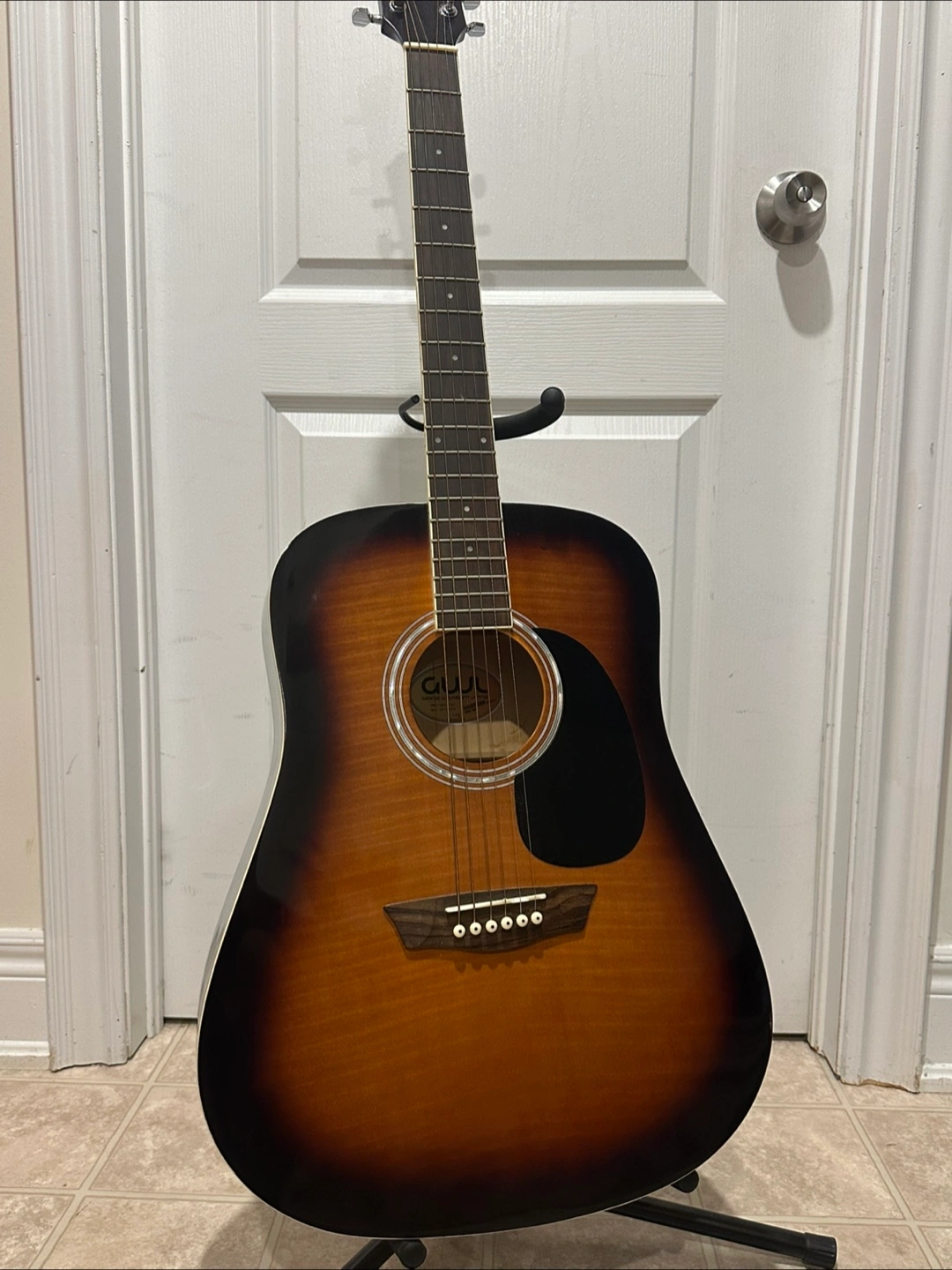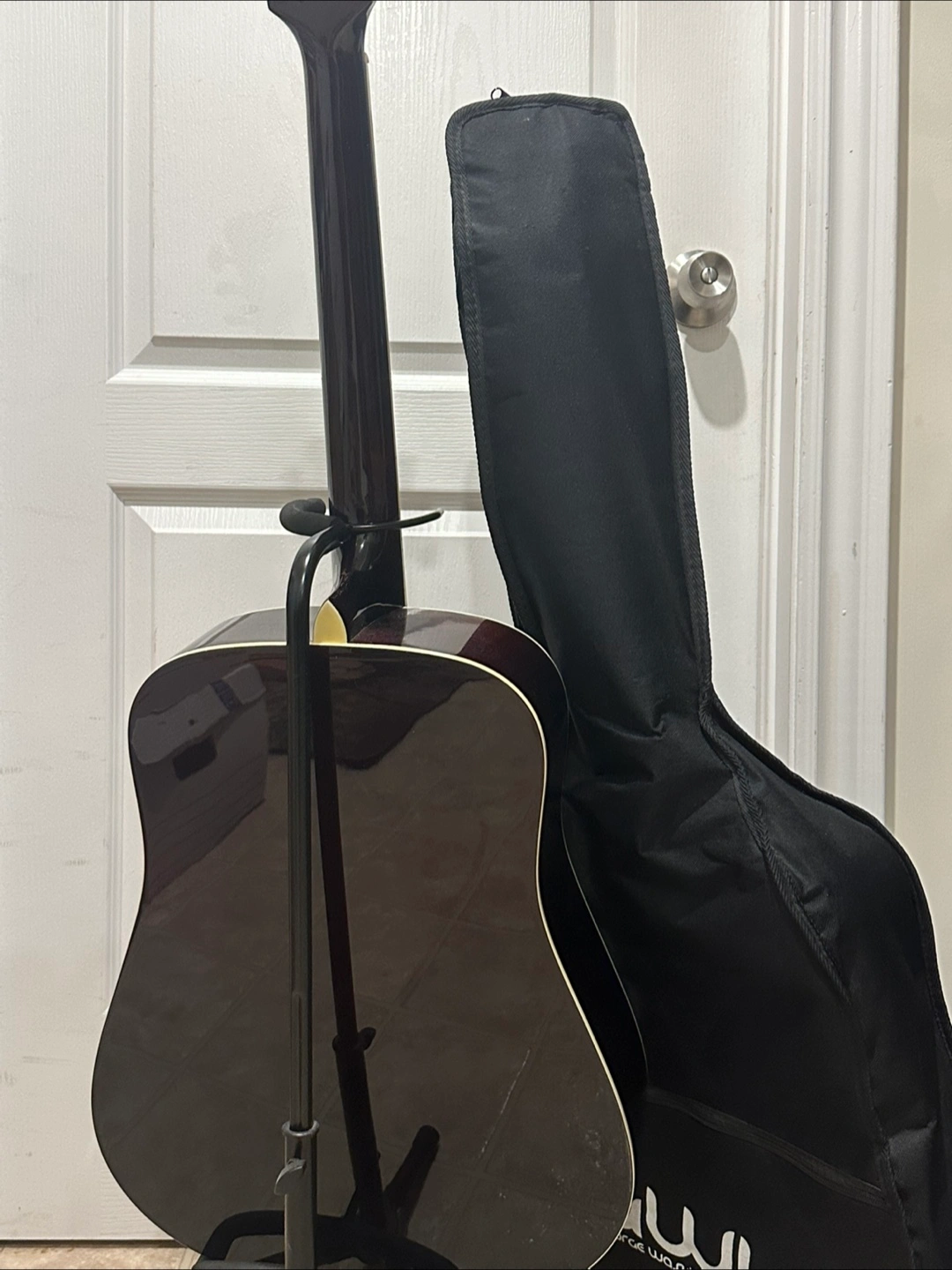 Selling a Glarry acoustic guitar! It's in great condition and comes with a case for easy transport and storage. Perfect for beginners or anyone looking for a reliable acoustic guitar to play around with