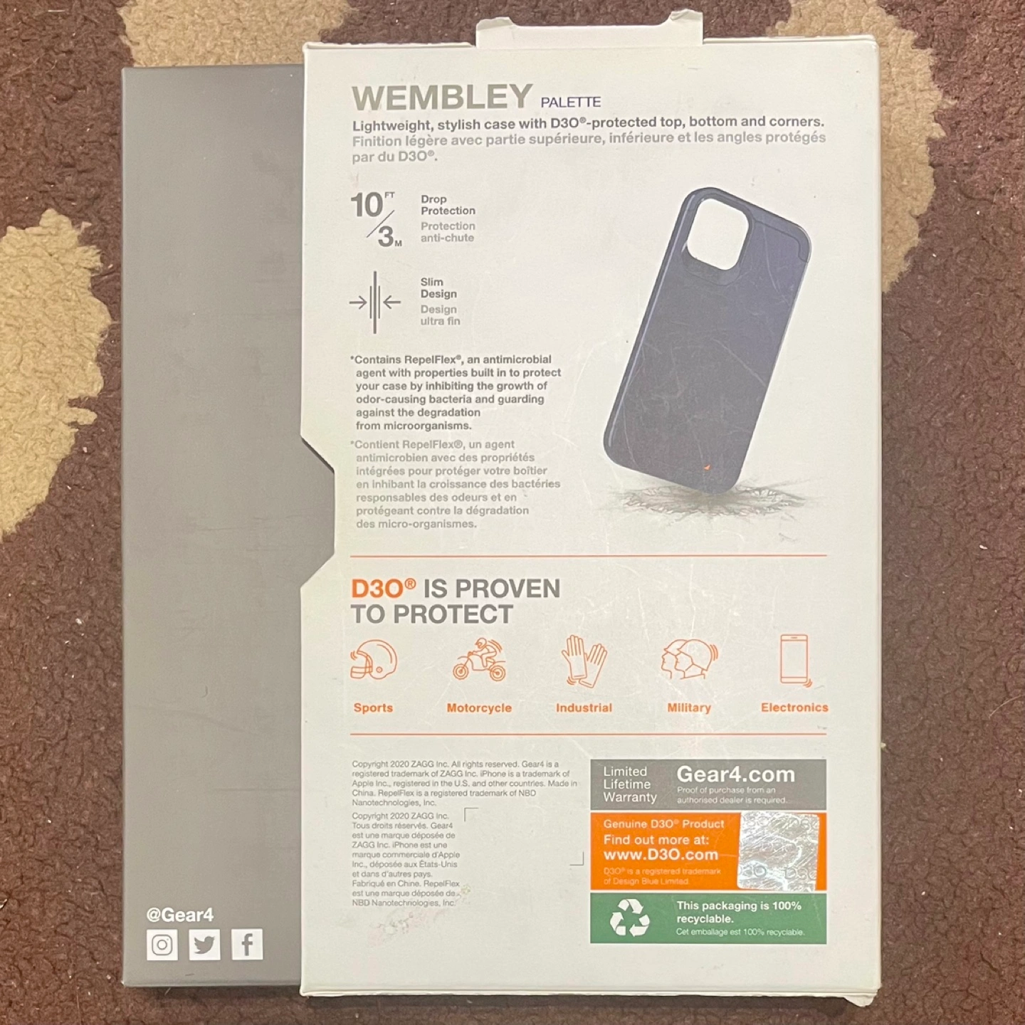 ๐ Scenic Acres NW โ Cash pickup only Crossposted High-quality Gear4 Wembley Palette case in navy blue, made for iPhone 12 / 12 Pro. Slim and stylish with serious drop protection โ great condition, includes box. Features: โข Built with D3Oยฎ impact protection, drop-tested up to 10 feet (3 meters) โข Slim, lightweight design with a smooth matte finish โข Antimicrobial coating to resist 99.9% of surface bacteria โข Wireless charging compatible โ no need to remove the case โข Reinforced corners and raised bezels protect screen and camera โข Flexible edges for easy grip and quick removal โข Includes original box (no damage) This is not a basic case โ itโs a premium protective option trusted by brands like Apple & Samsung stores. Clean, sharp look with proven durability. ๐ต Asking $15 โ fair price for a high-end case. Message if interested. Serious inquiries only.