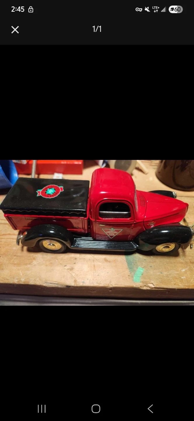 This vintage-inspired Canadian Tire truck is a charming collectible. While it's a used item, it remains in good condition, showcasing a vibrant red finish and detailed logos. A perfect addition to any collection, this piece captures the nostalgic spirit of Canadian Tire. Original box included.