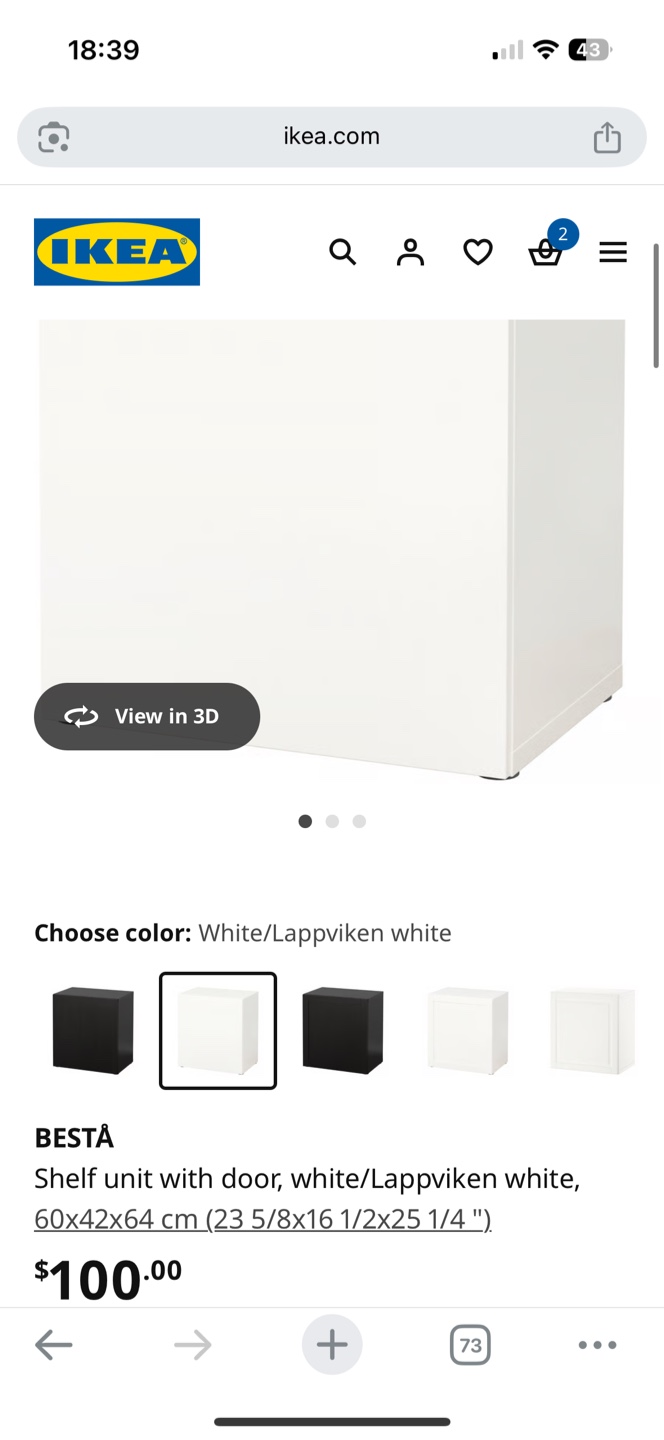 Selling an IKEA BESTÅ shelf unit with a door in white/Lappviken white. It measures 60x42x64 cm (23 5/8x16 1/2x25 1/4 "). Originally bought for $100.00