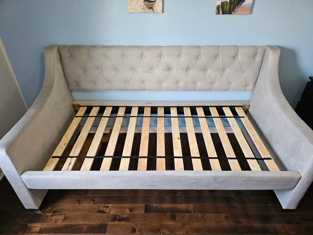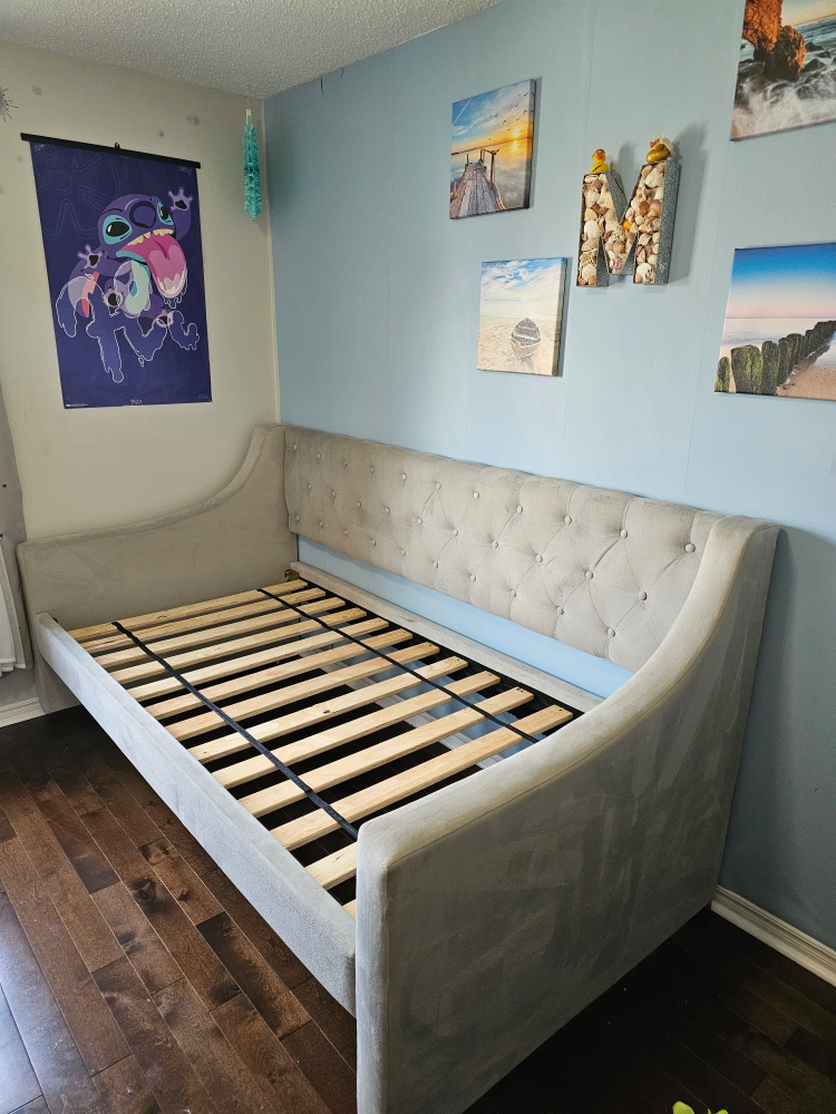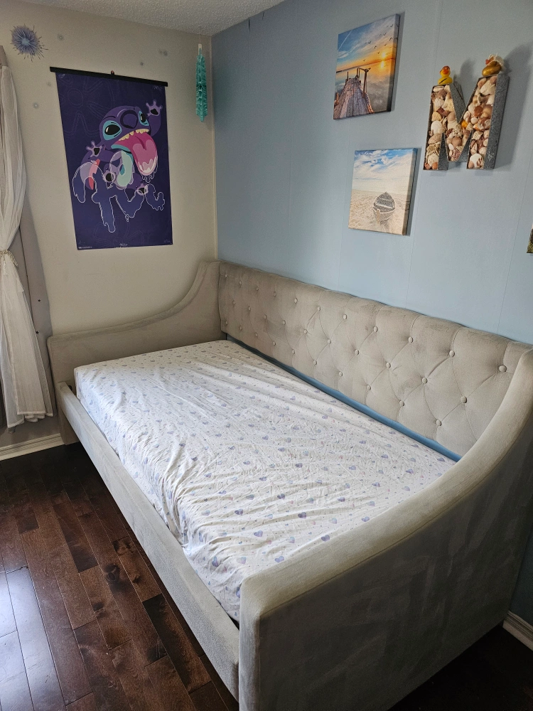 65Selling a lovely upholstered daybed frame! It's in great condition and would be perfect for a kids or guest room. The neutral colour makes it easy to match with any decor. Mattress not included Pick up by square one