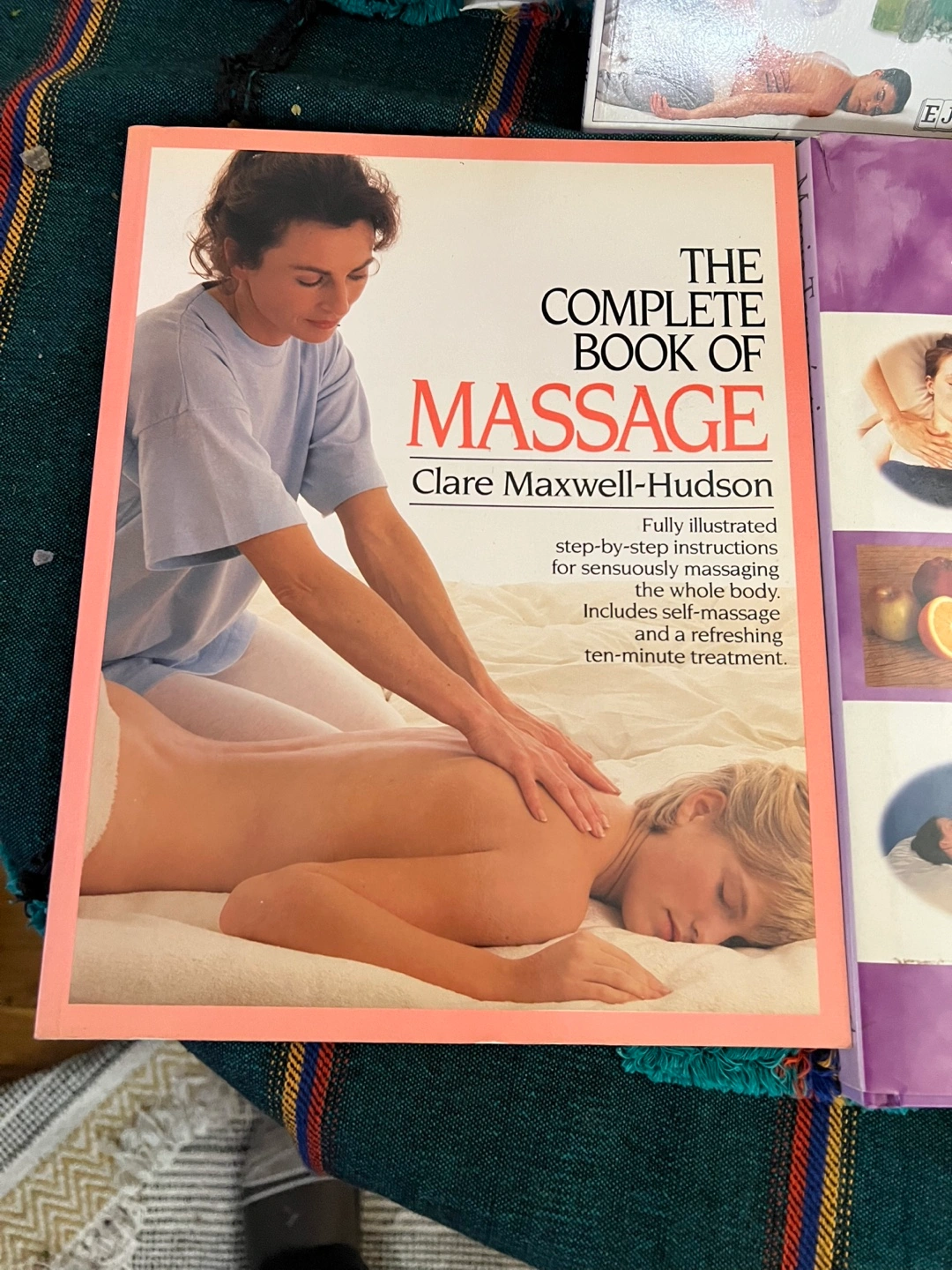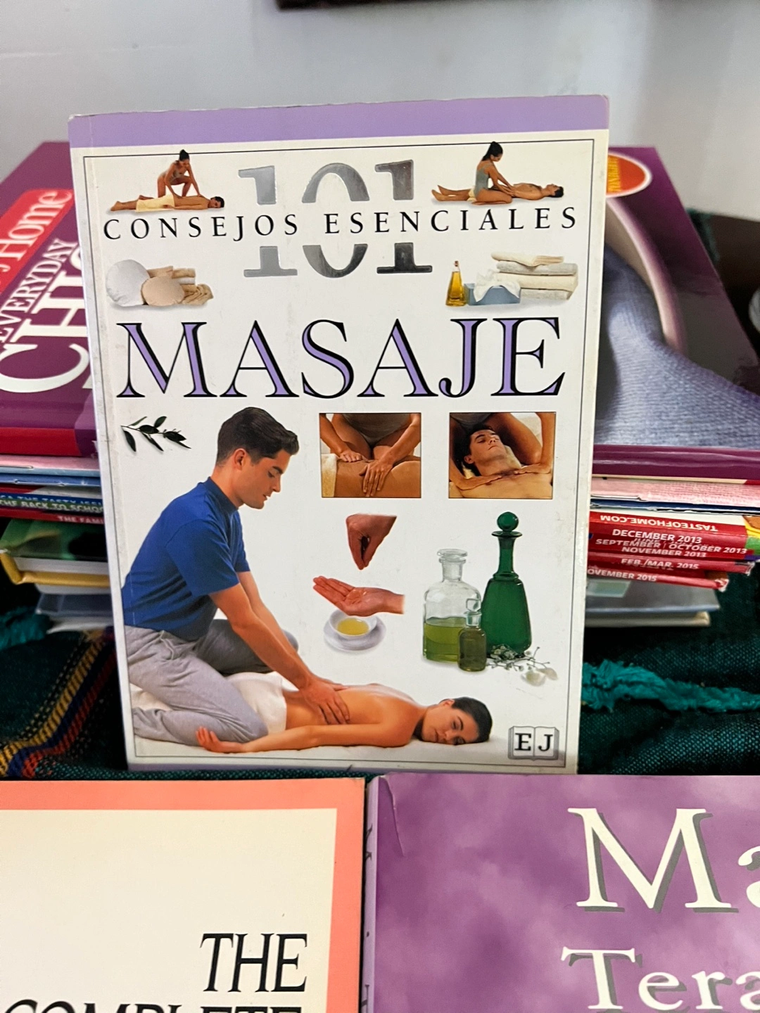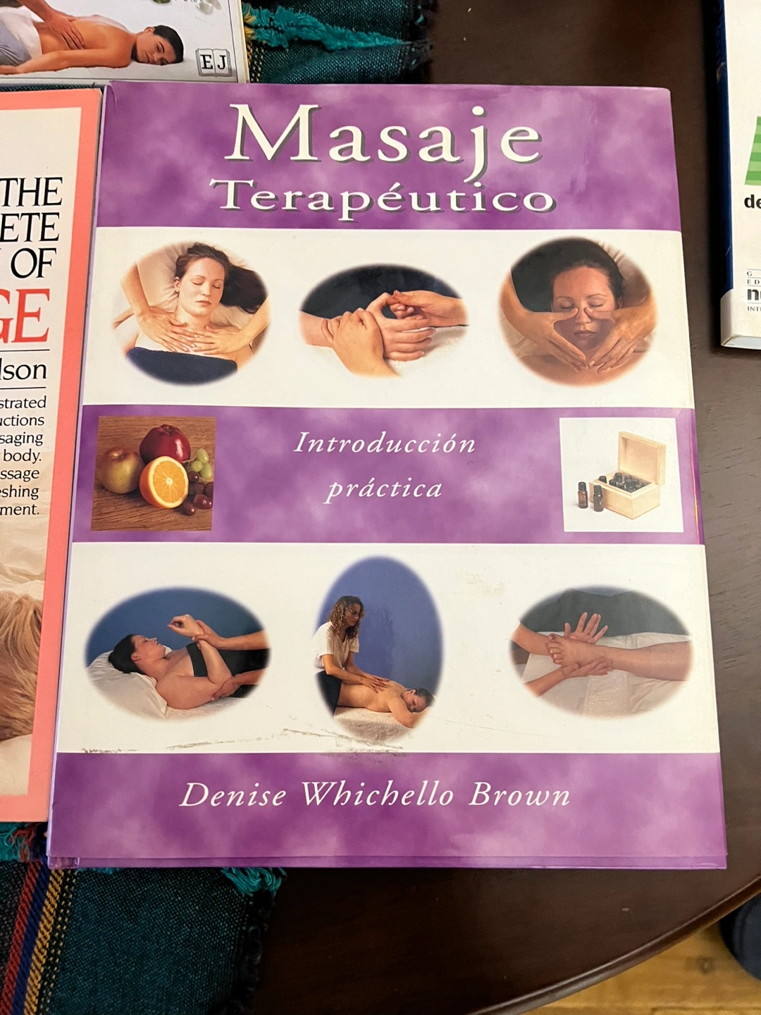 Selling two massage books. One is "The Complete Book of Massage" by Clare Maxwell-Hudson, and the other is "Masaje Terapéutico" by Denise Whichellio Brown