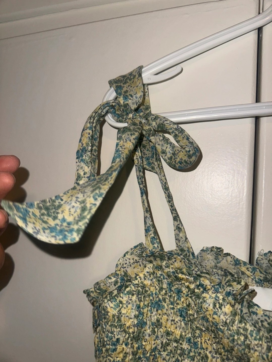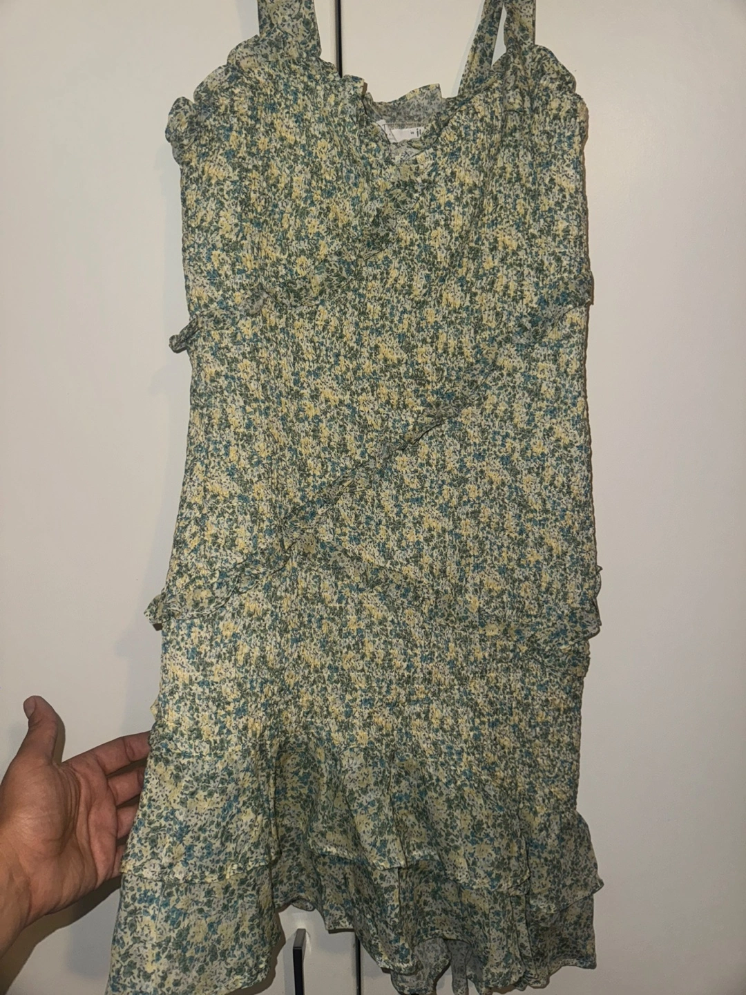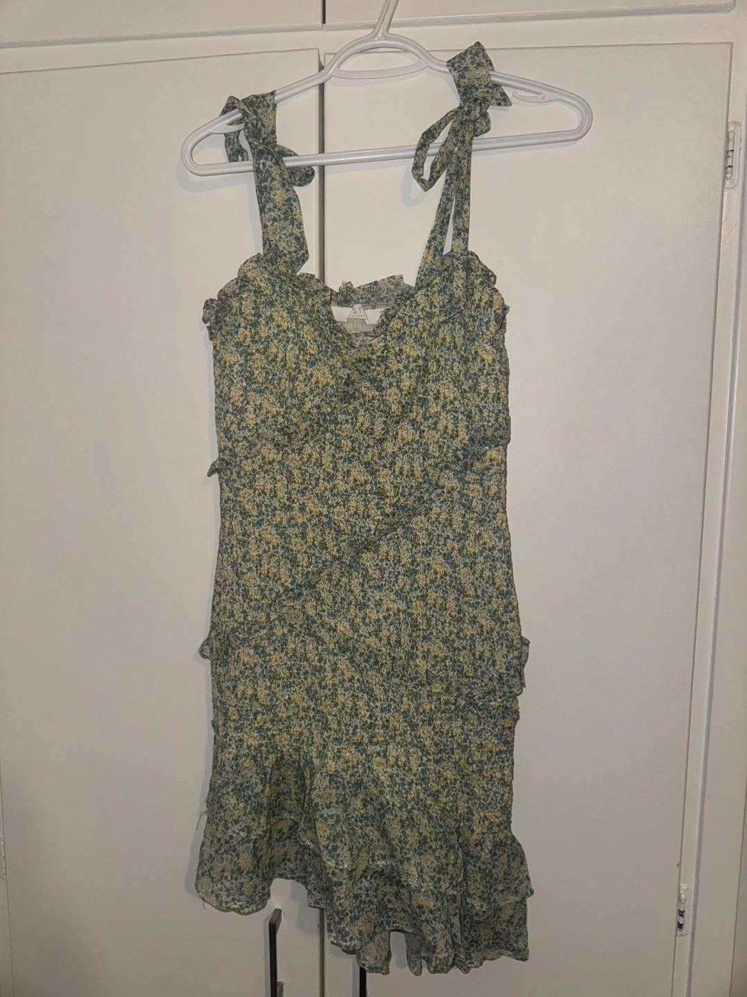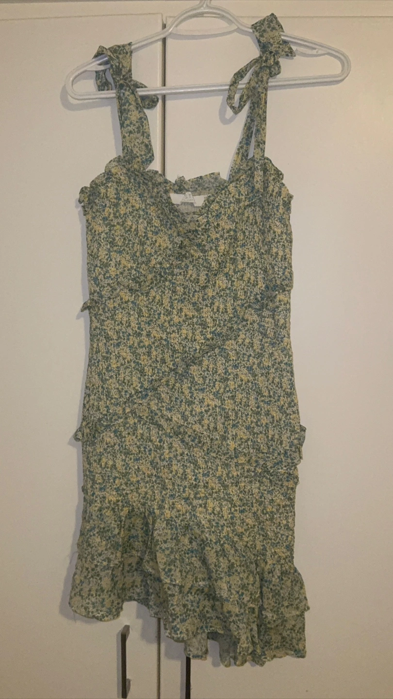 Cute Stitchdrop floral dress! It features a ruffled design and tie straps. Perfect for spring or summer!