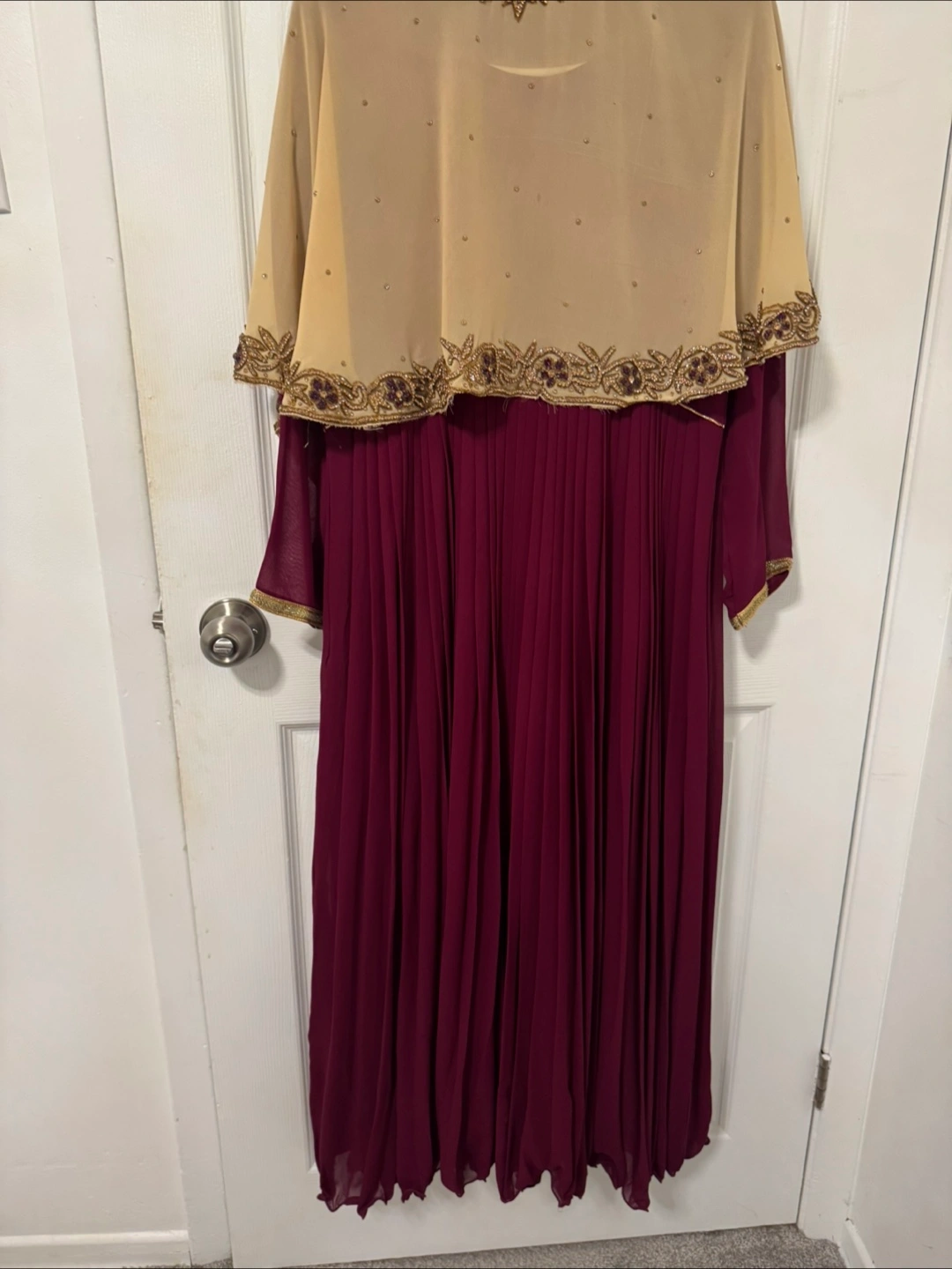 Selling a lovely burgundy and beige Pakistan dress. It features a beautiful design with intricate detailing. Perfect for a special occasion or event! Worn a few times, in great condition. Size small.