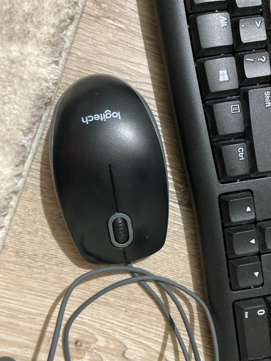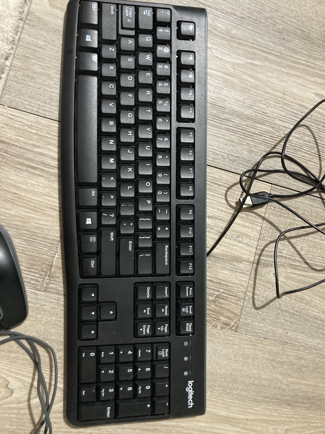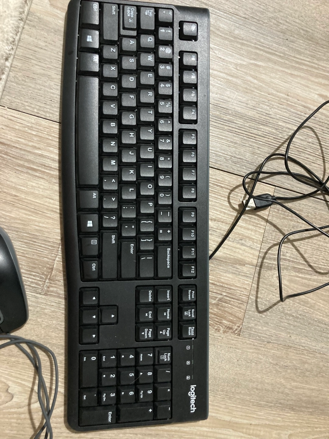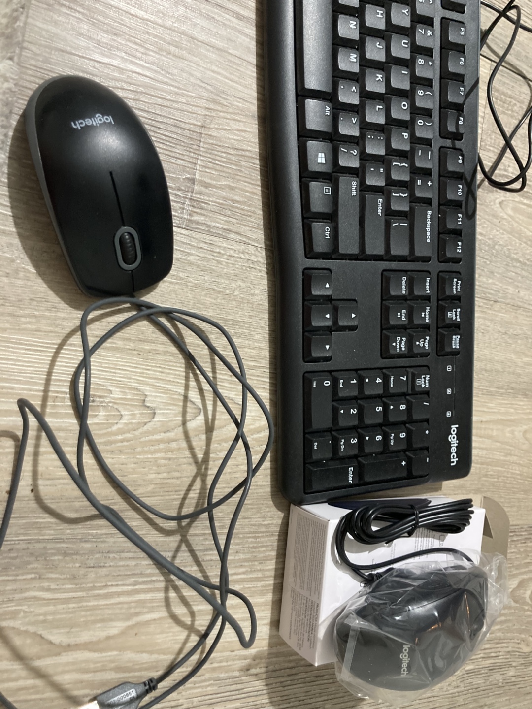 Selling a Logitech K120 keyboard and mouse combo in black. The keyboard and mouse are both in great condition and ready for a new home. The mouse comes in its original packaging!