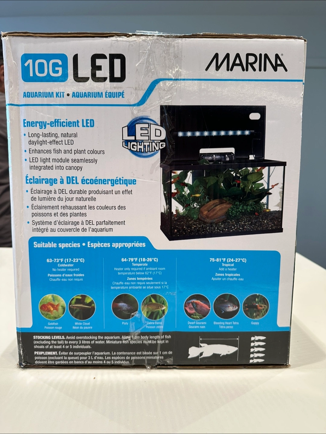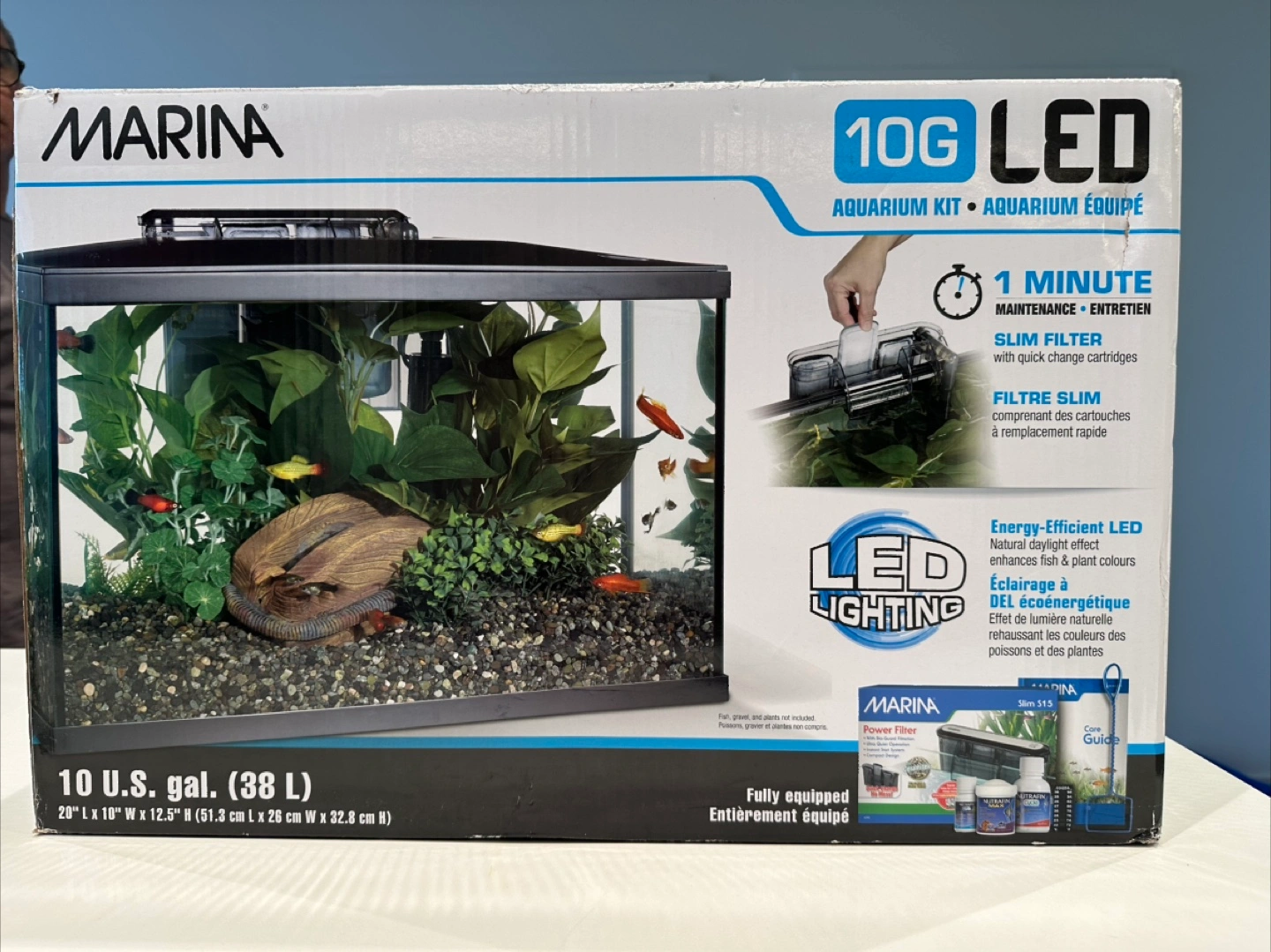 Selling a Marina 10G LED Aquarium Kit! It's fully equipped and comes in the original box. Perfect for setting up a beautiful aquarium!