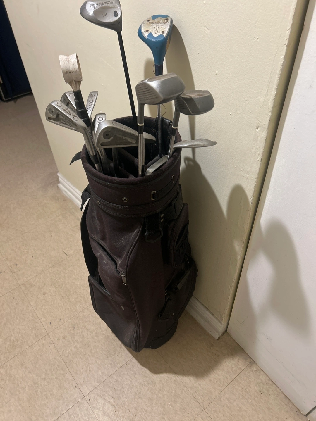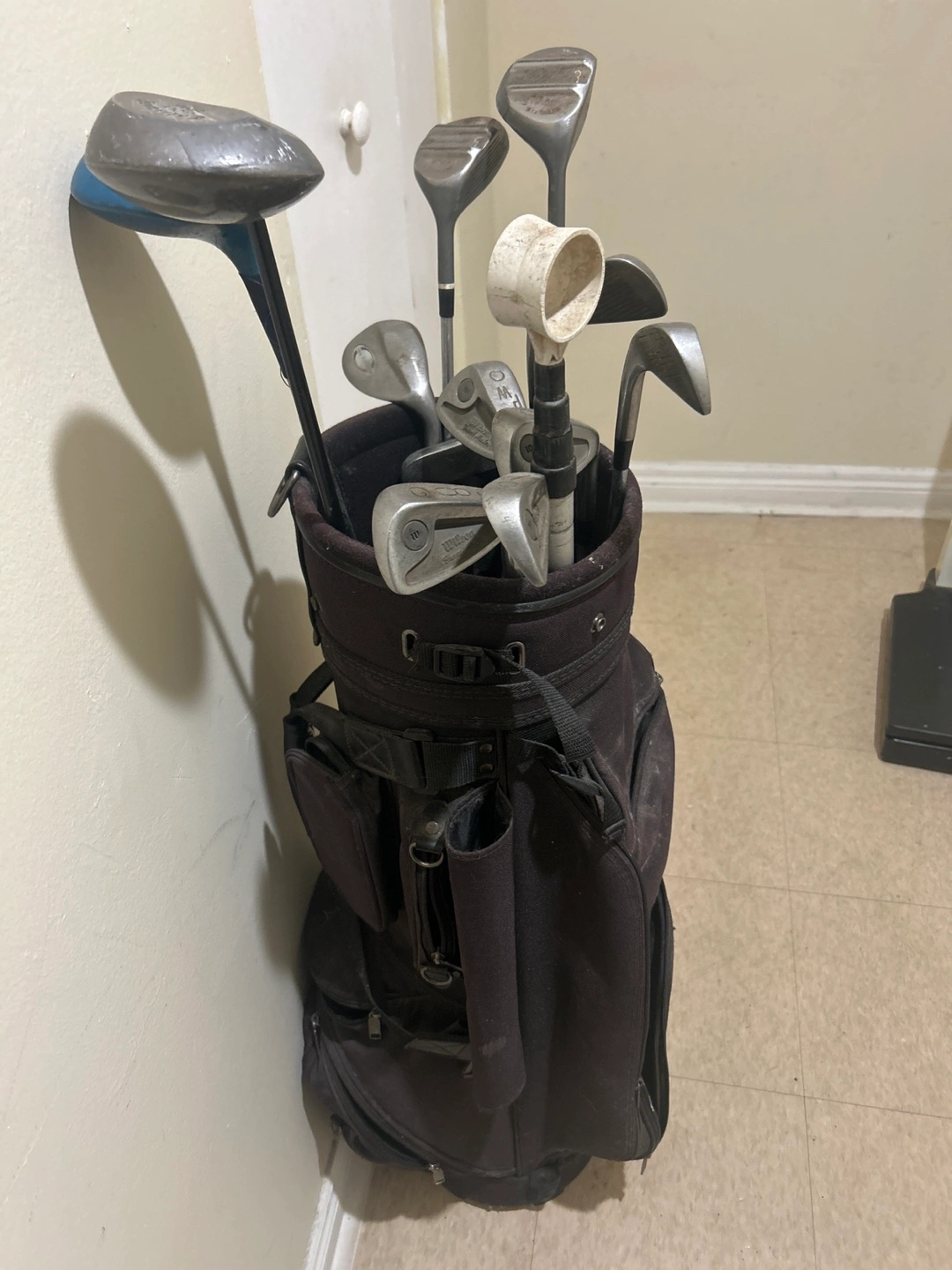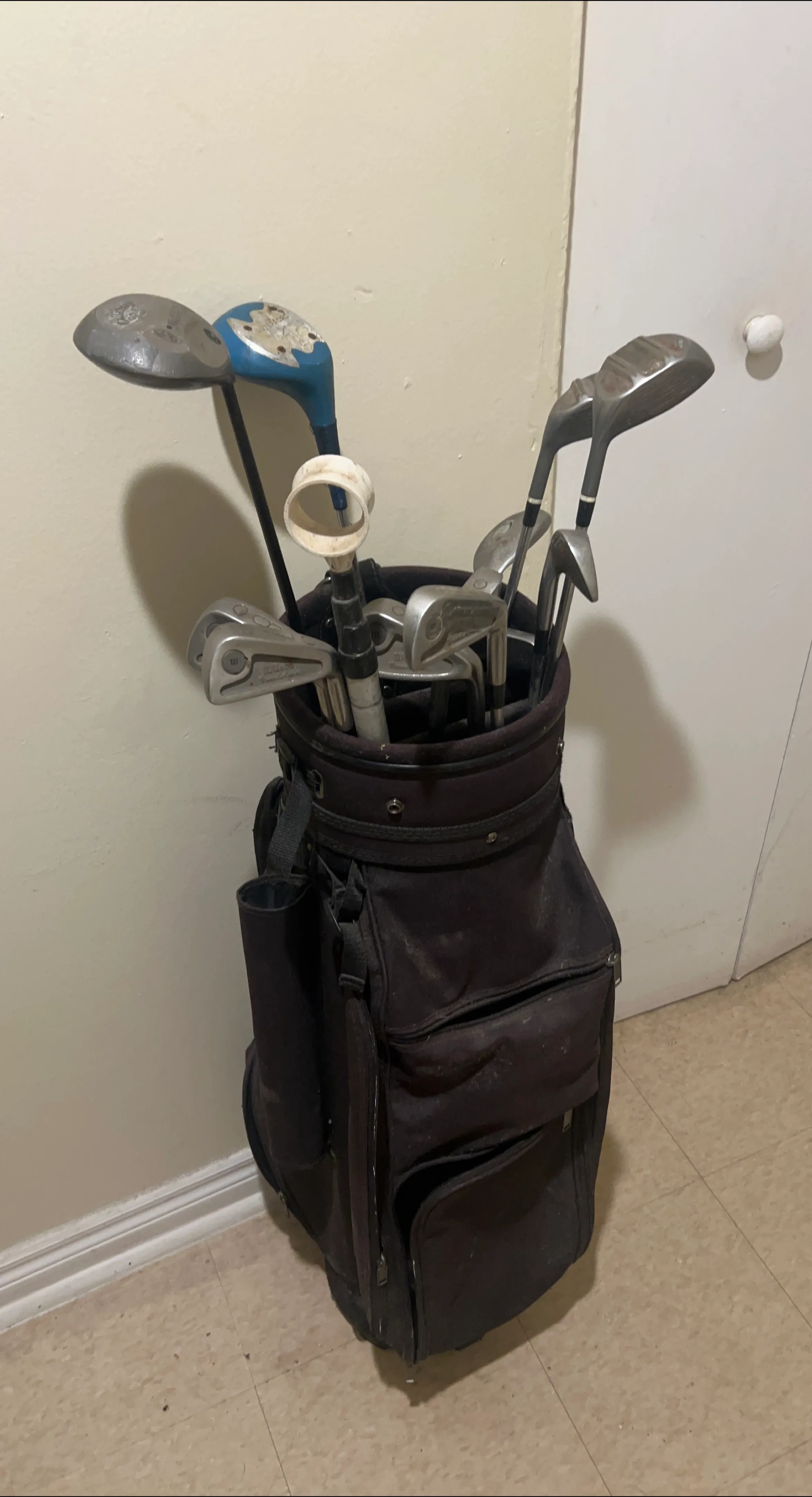 Selling a set of used golf clubs that come with a golf bag. Great for someone just starting out or looking for an affordable set to practice with. The clubs show signs of wear, but they are still functional and ready to use. Perfect for a casual round of golf! Open to trade obo