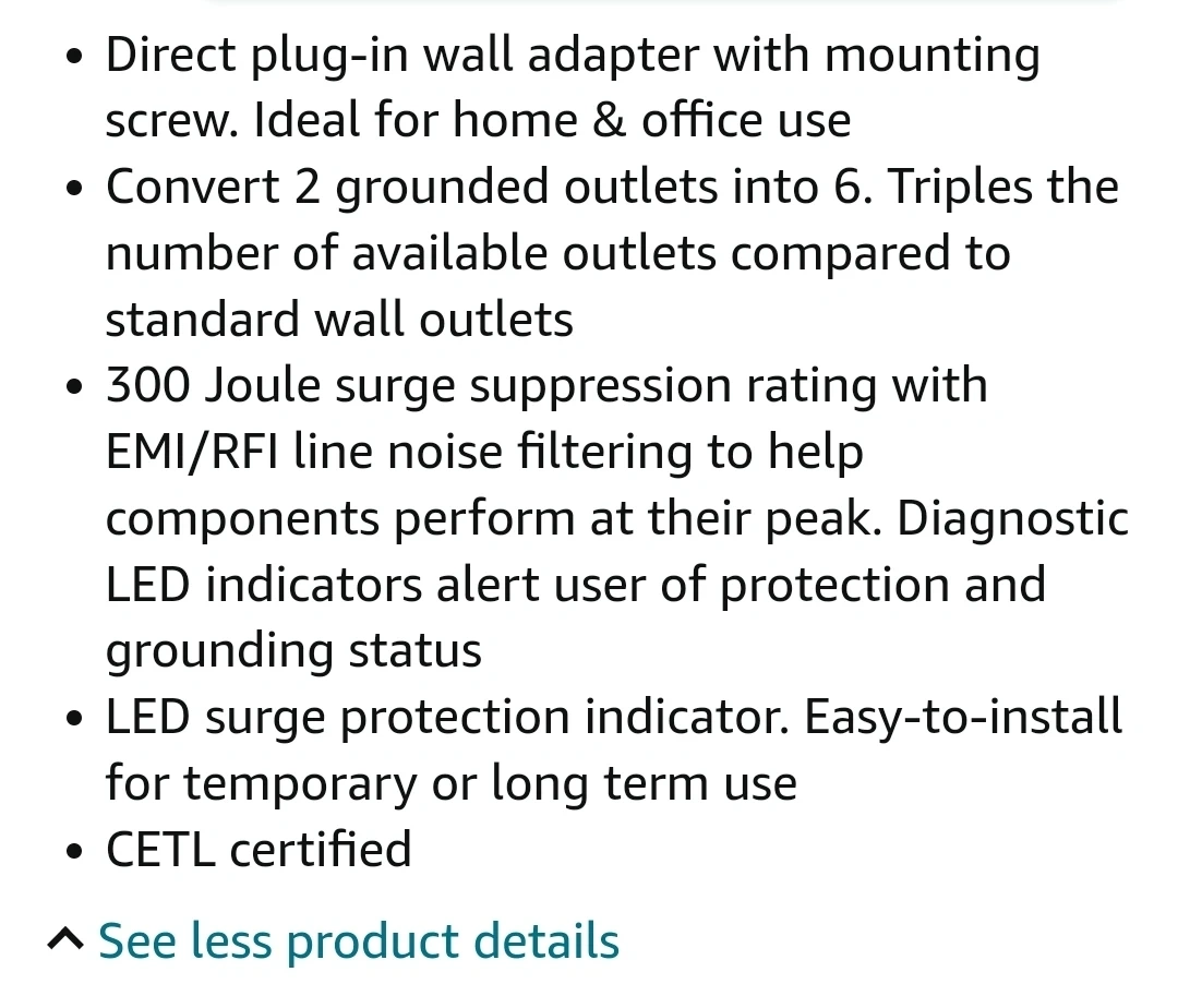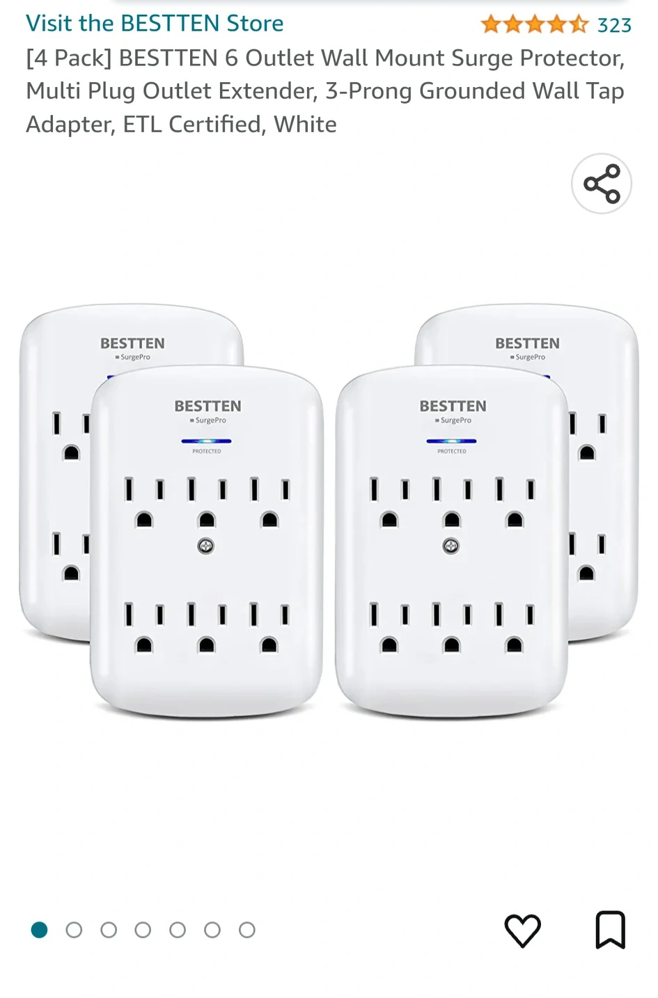 BESTTEN 6 Outlet Wall Mount Surge Protector