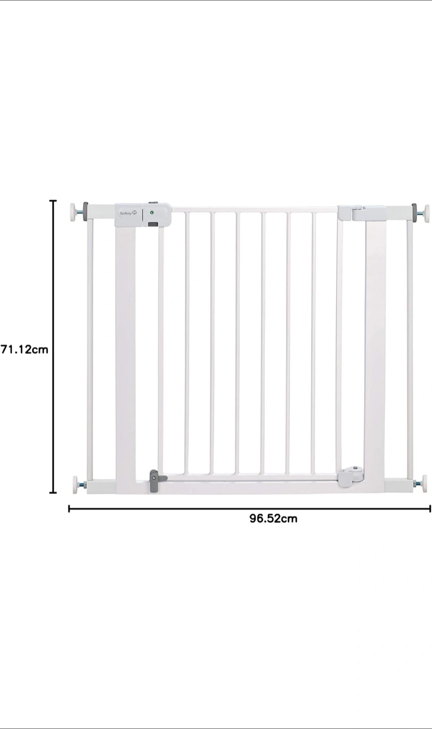 Selling a Safety 1st Easy Close Extra Wide baby gate. It's in great condition and ready to keep your little one safe! The gate is white and measures approximately 71cm in height and 96cm in width. Easy to install and use, it's perfect for doorways or hallways.