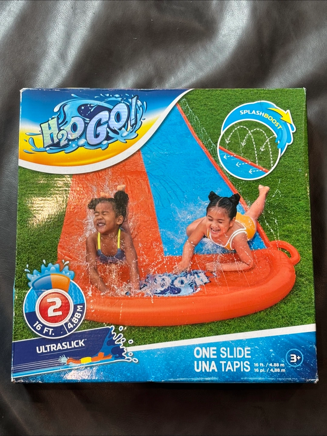 Have some fun in the sun with this H2OGO! single water slide! It's 16 feet long and features SplashBoost sprinklers for extra water coverage. It includes one slide and a repair patch. Recommended for ages 3+