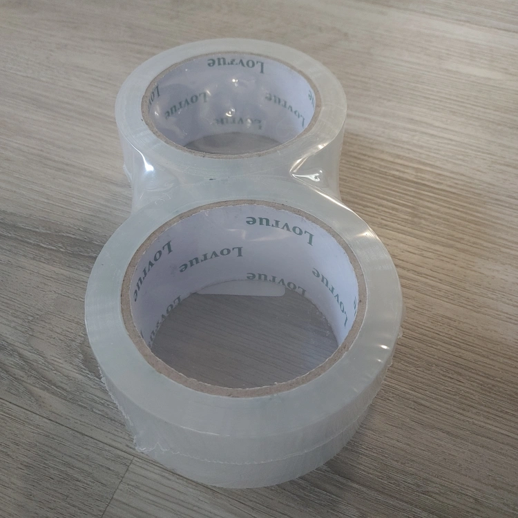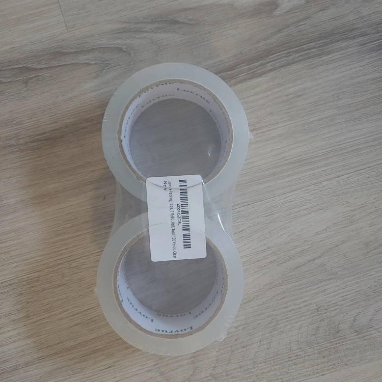 2 rolls of Lovrue packing tape, still in their original packaging. They're clear and ready to go for all your packing needs.