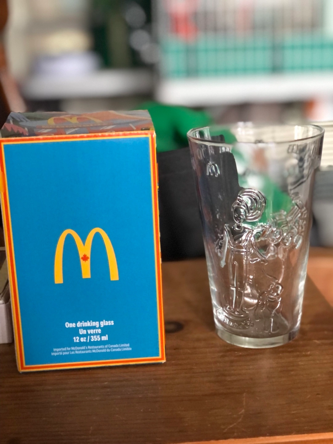 Selling a McDonald's drinking glass! It's in great condition and comes with the original box. The glass is 12 oz / 355 ml Unused ! Pickup Only ‼️