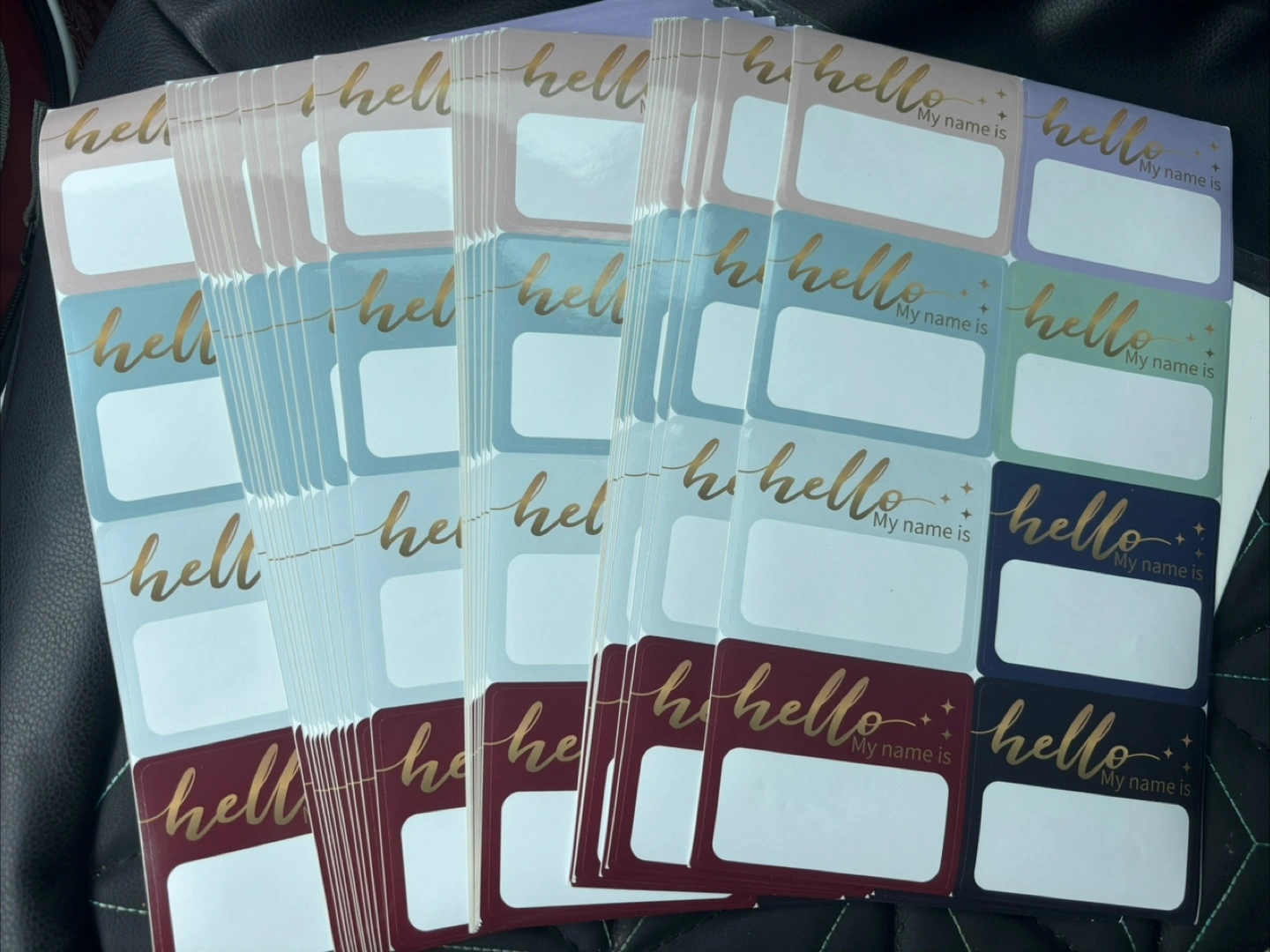 250 These 'Hello My Name Is' stickers are perfect for events, parties, or organizing your belongings! They come in a variety of colours and have a stylish gold script.