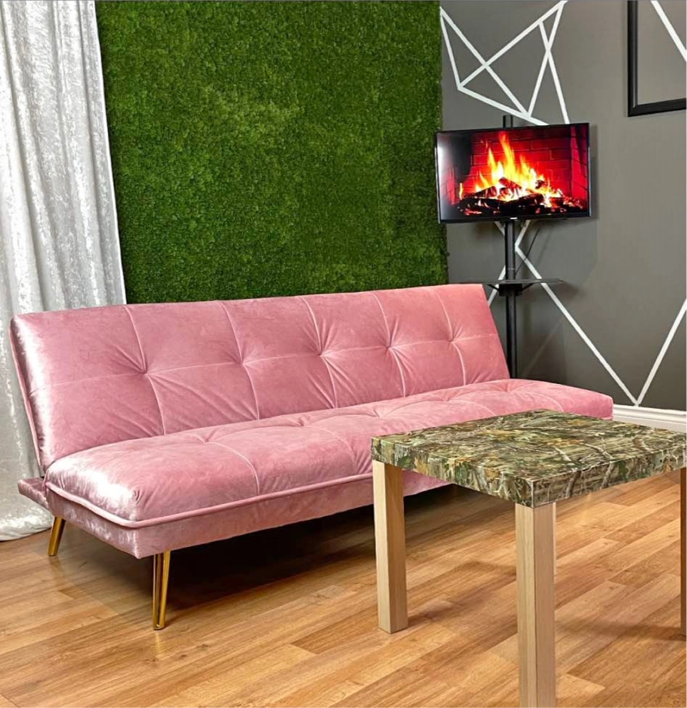 Structube Pink Velvet Futon Sofa Bed (DELIVERY AVAILABLE)