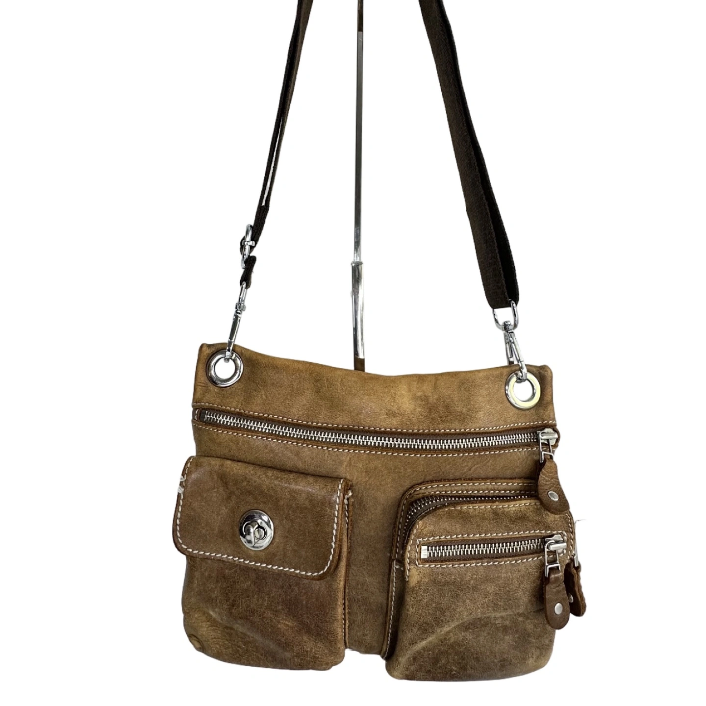 This Roots crossbody bag is made of genuine leather and features a stylish brown colour. It's perfect for carrying your essentials while keeping your hands free. The bag has multiple pockets for organization and a comfortable strap for easy wear. The leather has a beautiful, worn-in look.