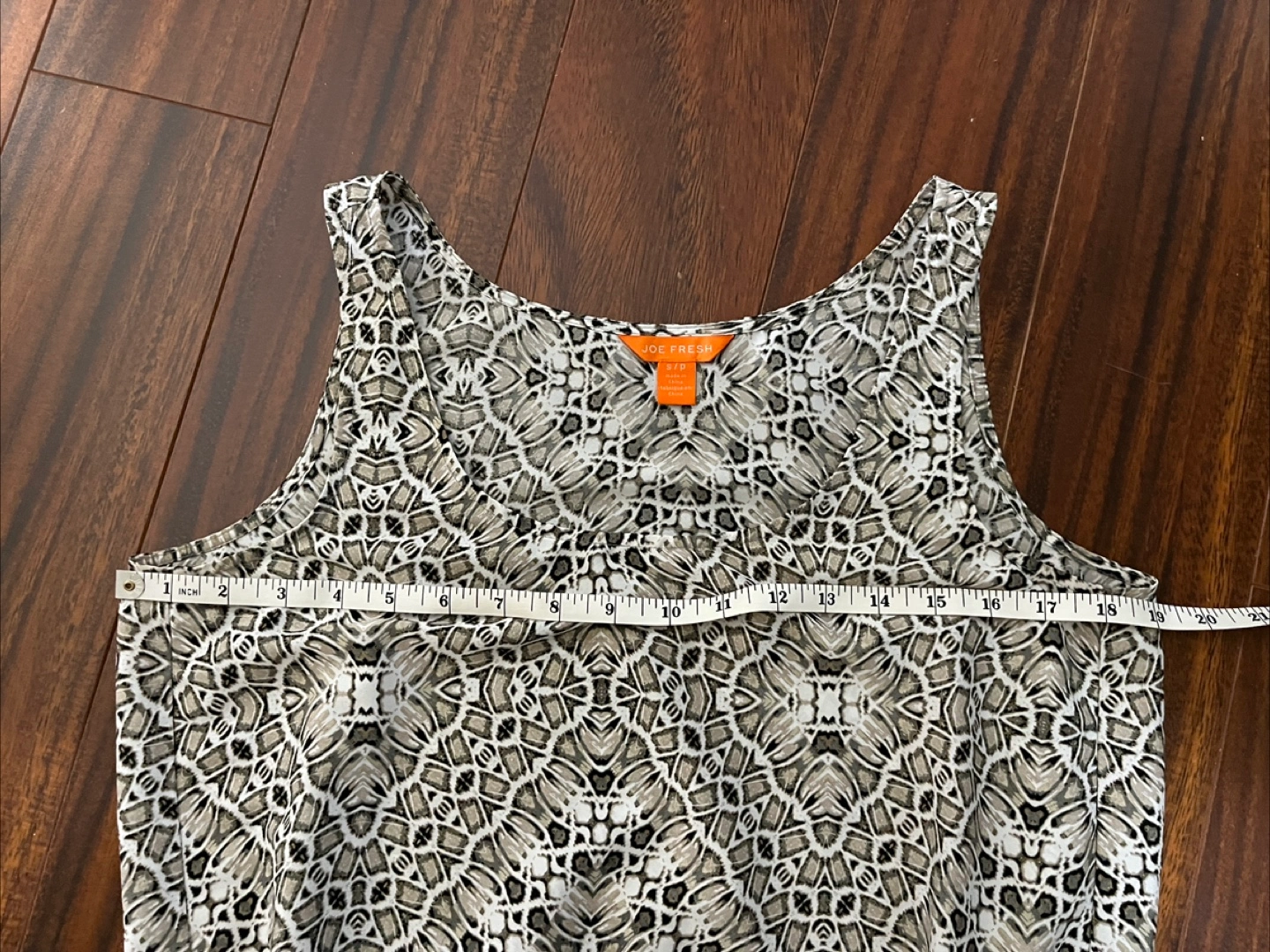 Joe Fresh women’s small sleeveless dress – geometric black taupe