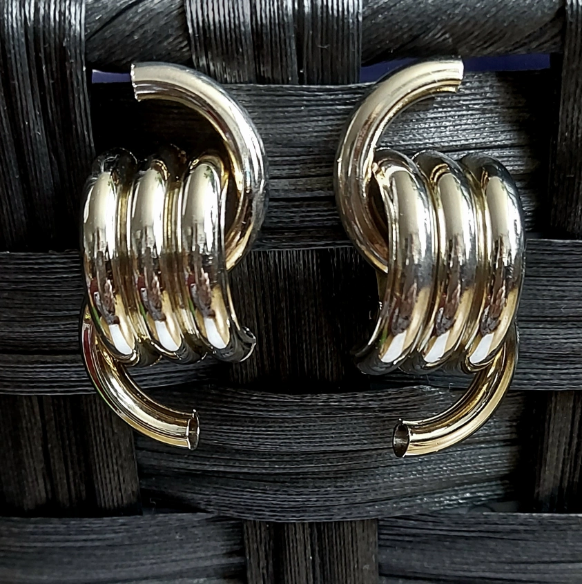 Selling a pair of vintage silver tone clip-on earrings. They have a unique design and are in great condition! Perfect for adding a touch of retro style to any outfit