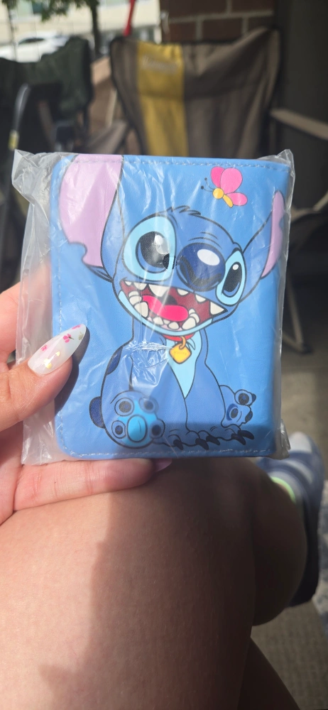 This is a brand new Stitch wallet in blue! It has a cute design and is perfect for carrying your cards and cash
