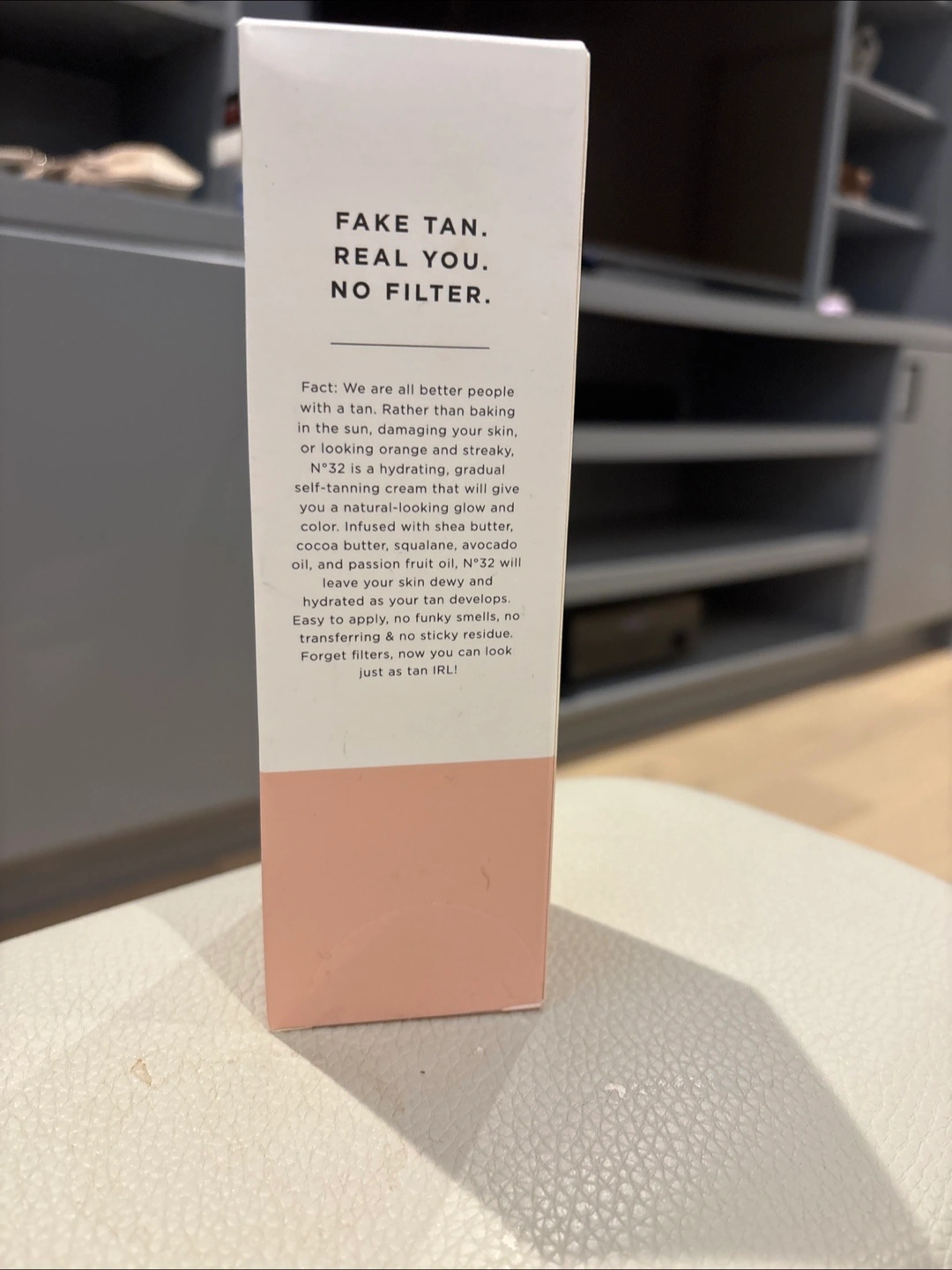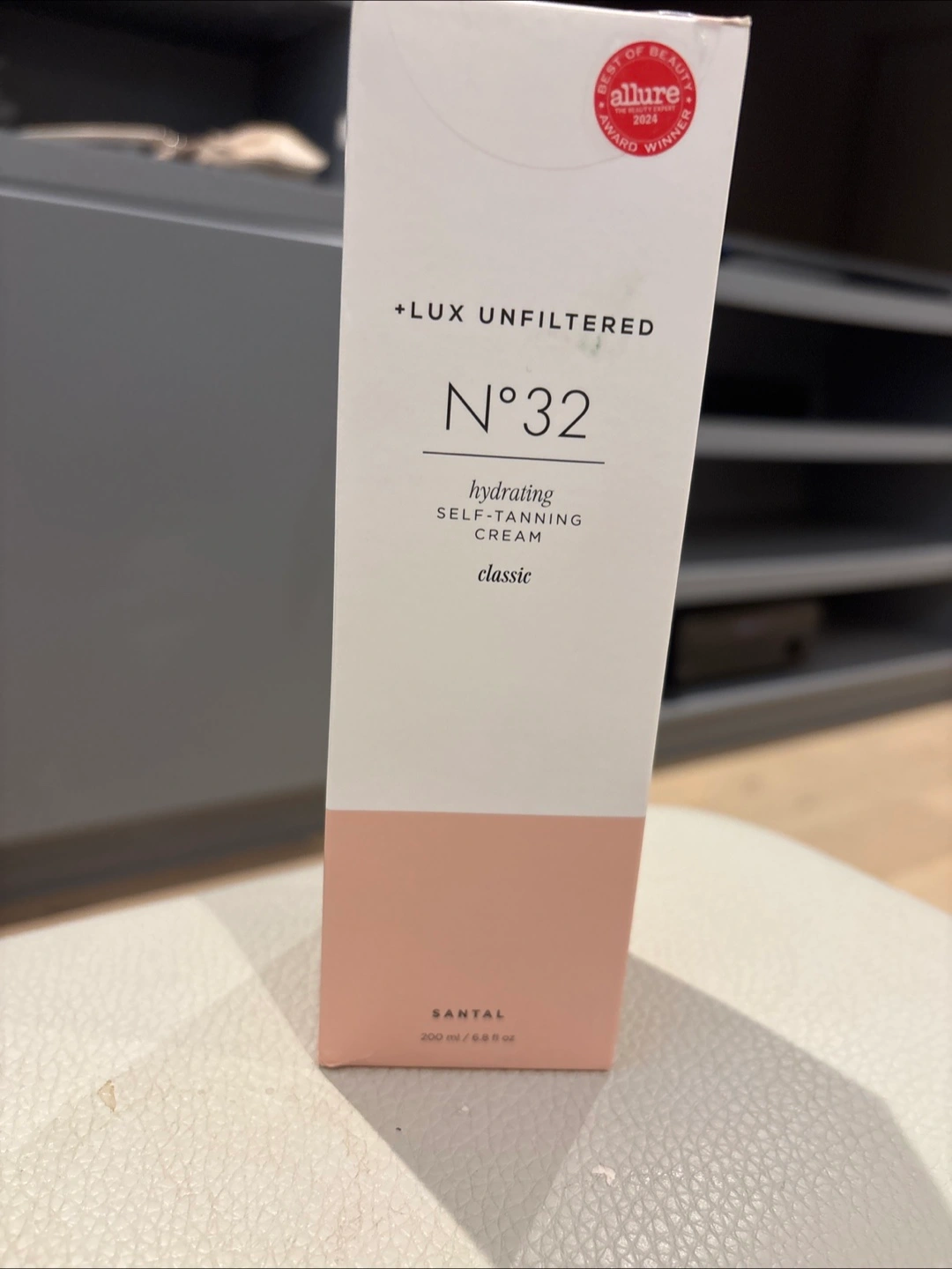Selling a bottle of +Lux Unfiltered N°32 hydrating self-tanning cream in classic. It's a gradual self-tanning cream that will give you a natural-looking glow and color infused with shea butter, cocoa butter, squalane, avocado oil, and passion fruit oil. N°32 will leave your skin dewy and hydrated as your tan develops. Easy to apply, no funky smells, no transferring, no sticky residue
