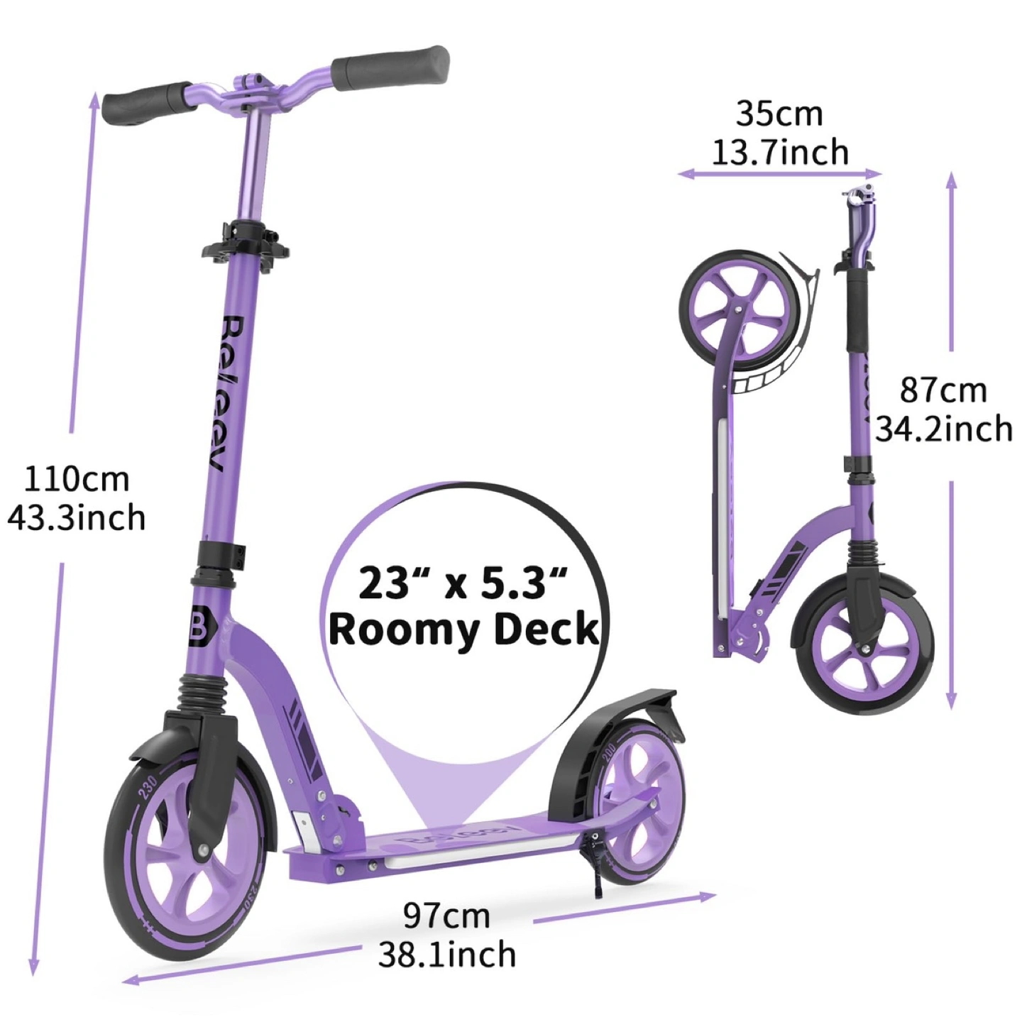BELEEV V10 Big Wheel Scooter for Kids Ages 6+ w Light-Up Deck