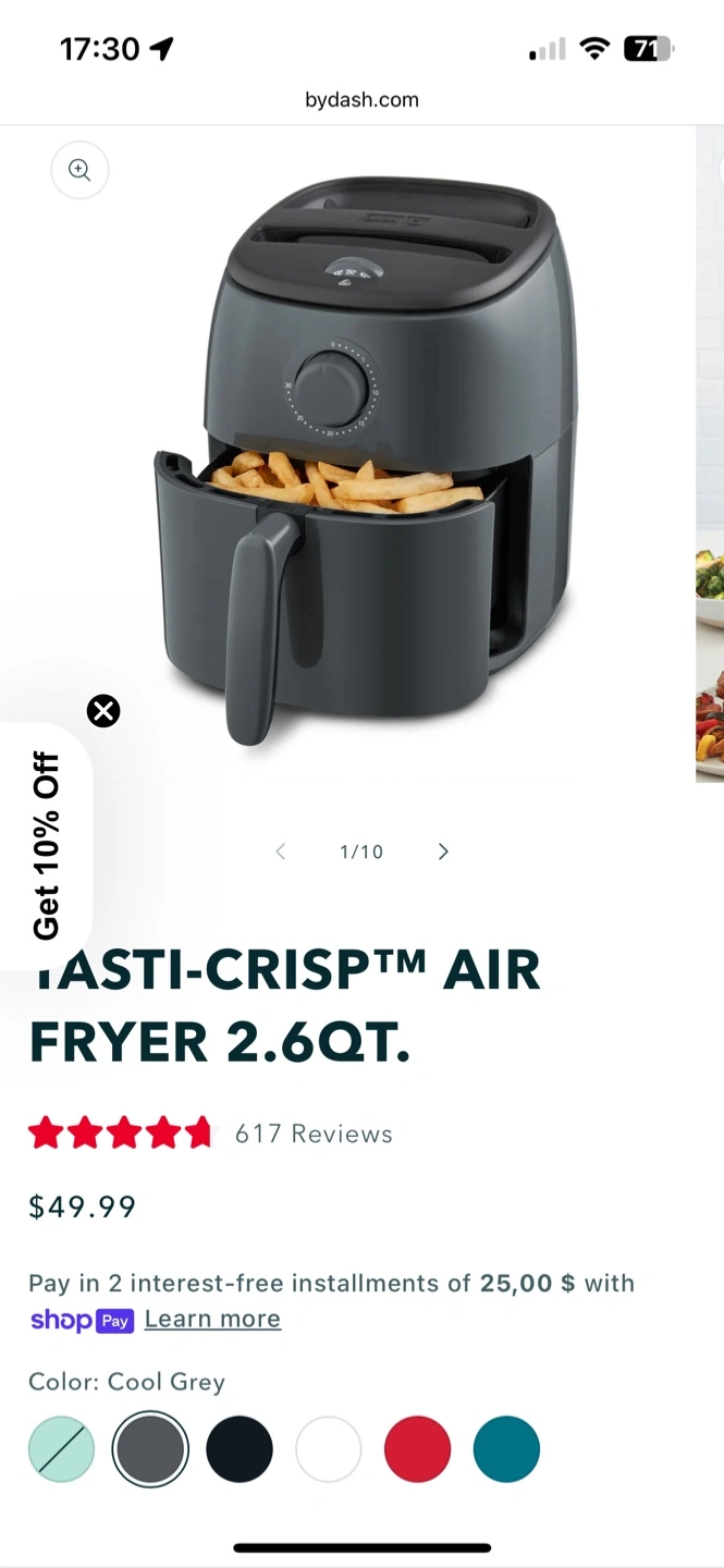 Dash Compact Air Fryer 2.6QT - Cool Grey