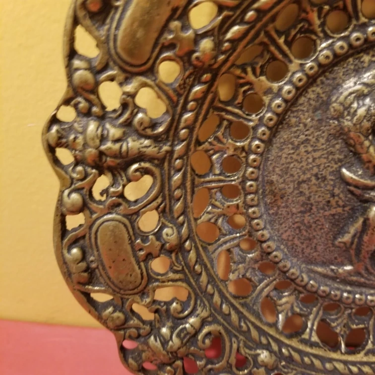 Vintage brass wall hanging plate. Wall art decor 11" diameter.