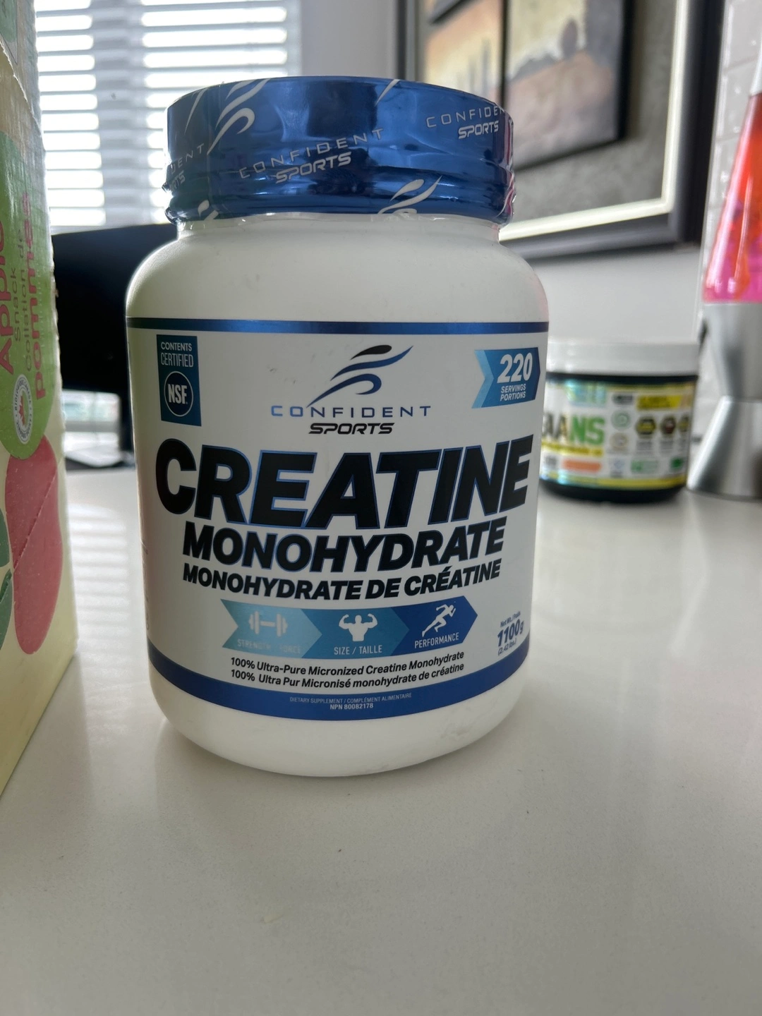 Selling a new container of Confident Sports Creatine Monohydrate! It's an 1100g container with 220 servings of 100% Ultra-Pure Micronized Creatine Monohydrate. Perfect for boosting your strength and performance!