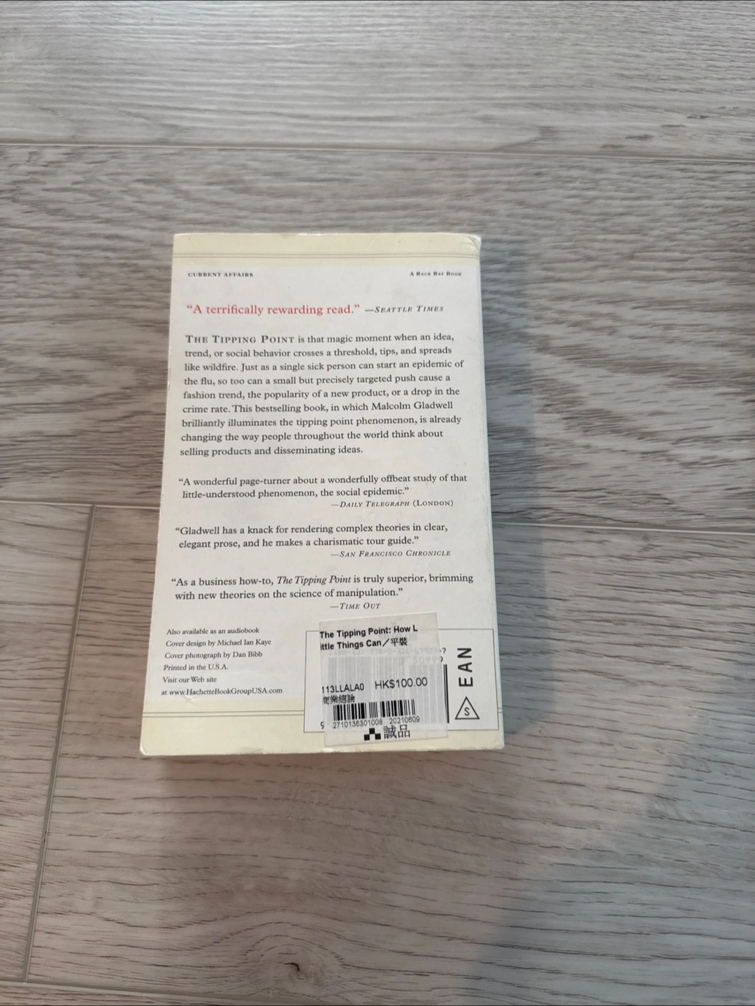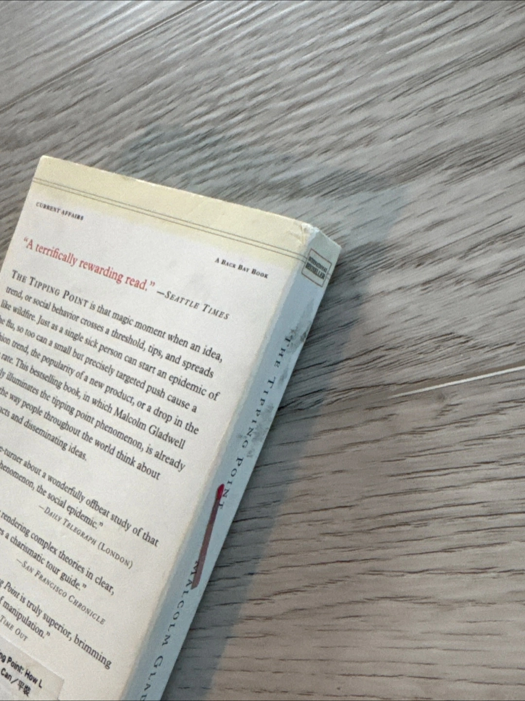 Selling a copy of "The Tipping Point: How Little Things Can Make a Big Difference" by Malcolm Gladwell! It's an international bestseller that explores the magic moment when an idea, trend, or social behavior crosses a threshold, tips, and spreads like wildfire. A great read for anyone interested in social dynamics and how things change!
