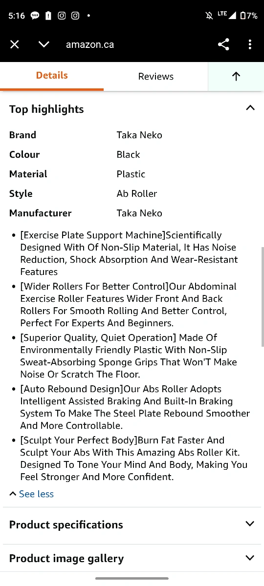 Get ready to work those abs with this Taka Neko Automatic Rebound Ab Roller! It's in black and designed to help you exercise your abdominal muscles effectively. The roller has a 10cm wheel and features an elbow support design to help eliminate arm compensation, ensuring your abs are the primary focus of each movement.
