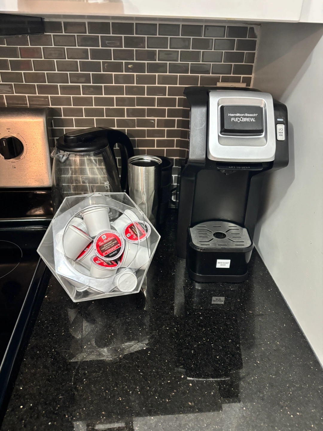211Selling a Hamilton Beach FlexBrew single-serve coffee maker. It's in great condition and ready to brew your favourite coffee from a pod or your favourite loose coffee to use in available basket. Can accommodate a mug or thermos type coffee mug I have 2, bringing the one at the office home after selling this one Paid $100 for it