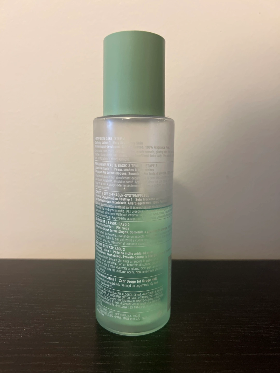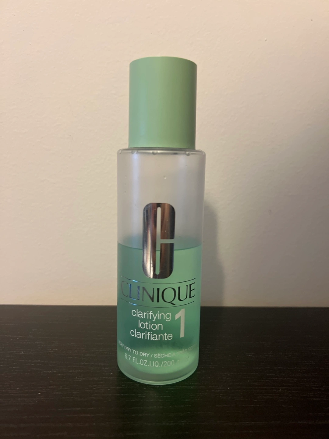 Selling a bottle of Clinique Clarifying Lotion 1 for dry to dry combination skin. It's a gentle exfoliator that helps to remove dead skin cells and reveal a smoother, brighter complexion.