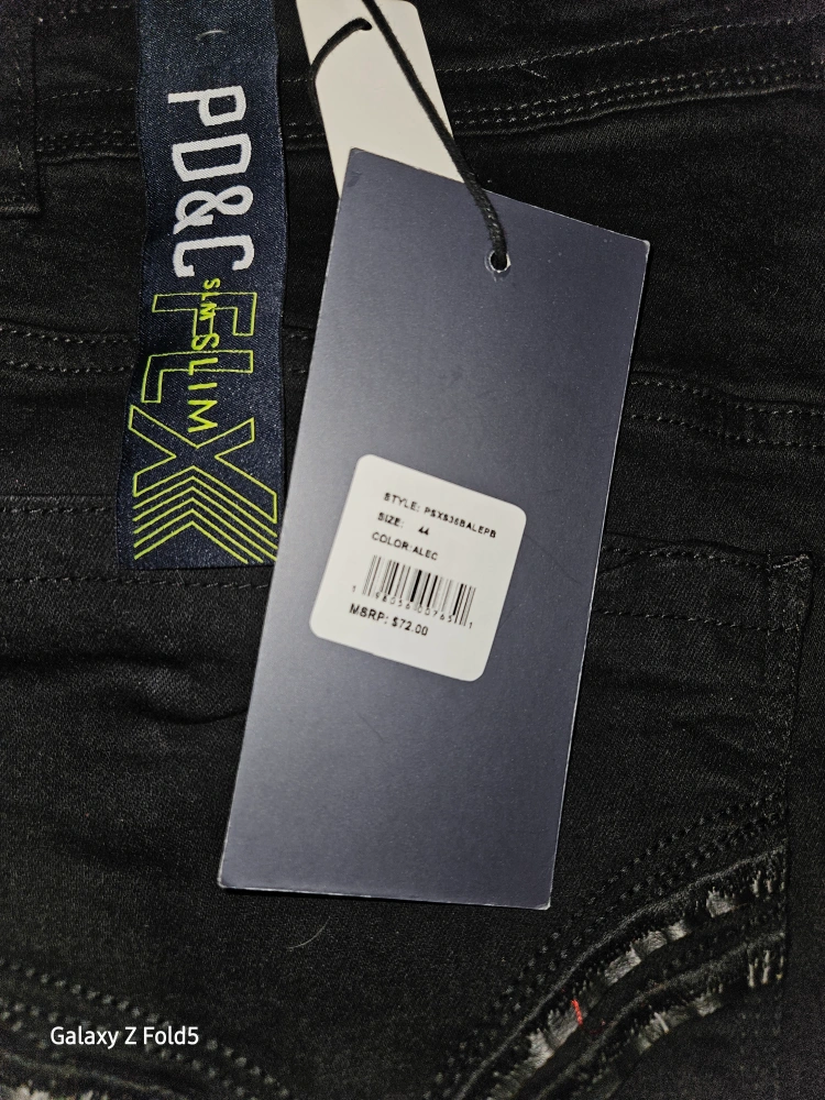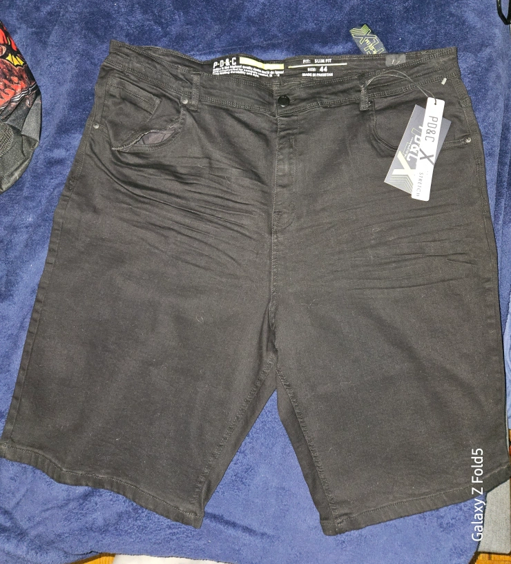 Selling a pair of NEW PD&C X slim fit stretch shorts in black. They are size 44 and have a stylish design on the back pocket. The shorts are in great condition and ready for a new home! The tag shows an MSRP of $72.00