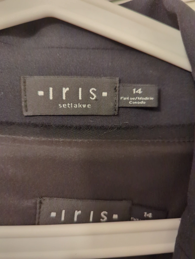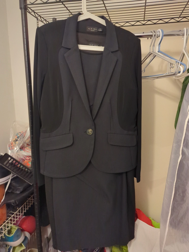 Gifting a beautiful Iris Setlakwe black suit in size 14! This stylish suit is perfect for any professional setting. It's made in Canada and features a blend of materials, including 50% polyester, 47% cotton/coton/lycra, 26% polyamid, and 7% elastane. The lining is 80% nylon and 20% spandex. Free pickup King and Sackville.