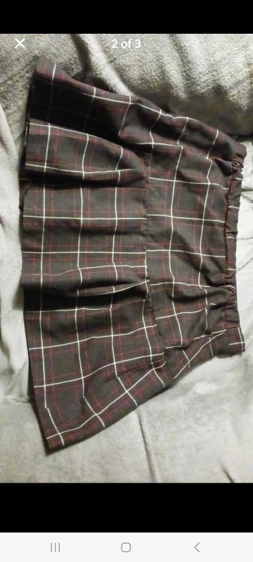 Selling a cute plaid mini skirt! It features a classic plaid pattern in dark colours with white accents. Perfect for adding a touch of retro style to your wardrobe