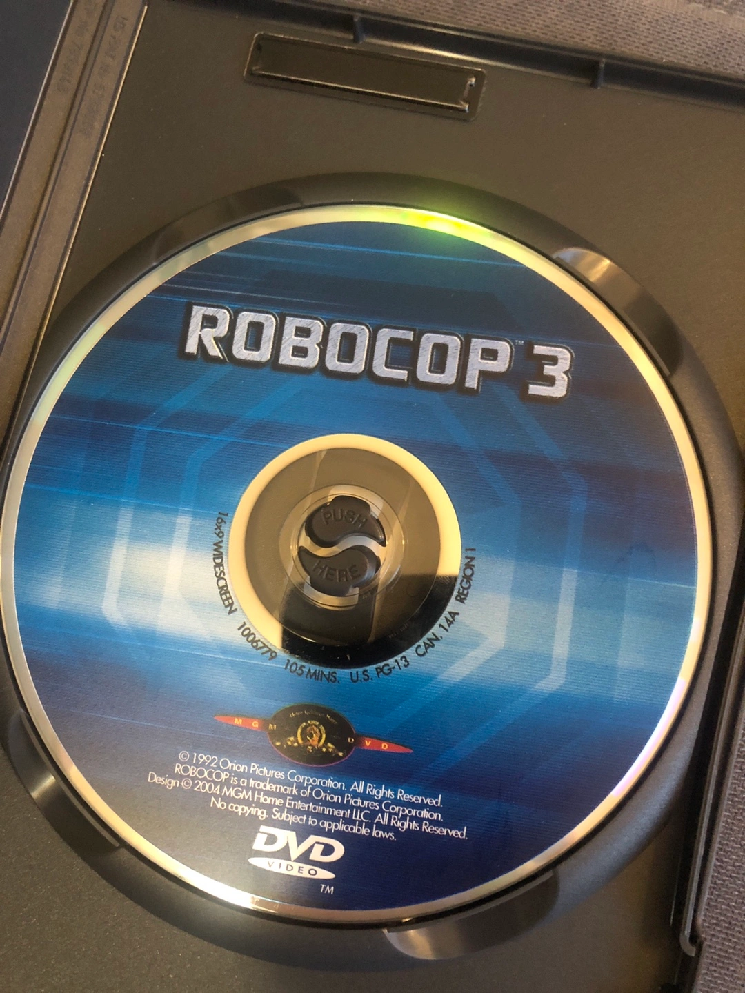 Selling a DVD of Robocop 3! This action-packed sci-fi movie is ready for a new home. It's a classic film for any collector or fan of the Robocop series. Enjoy the thrills and excitement of this movie night!