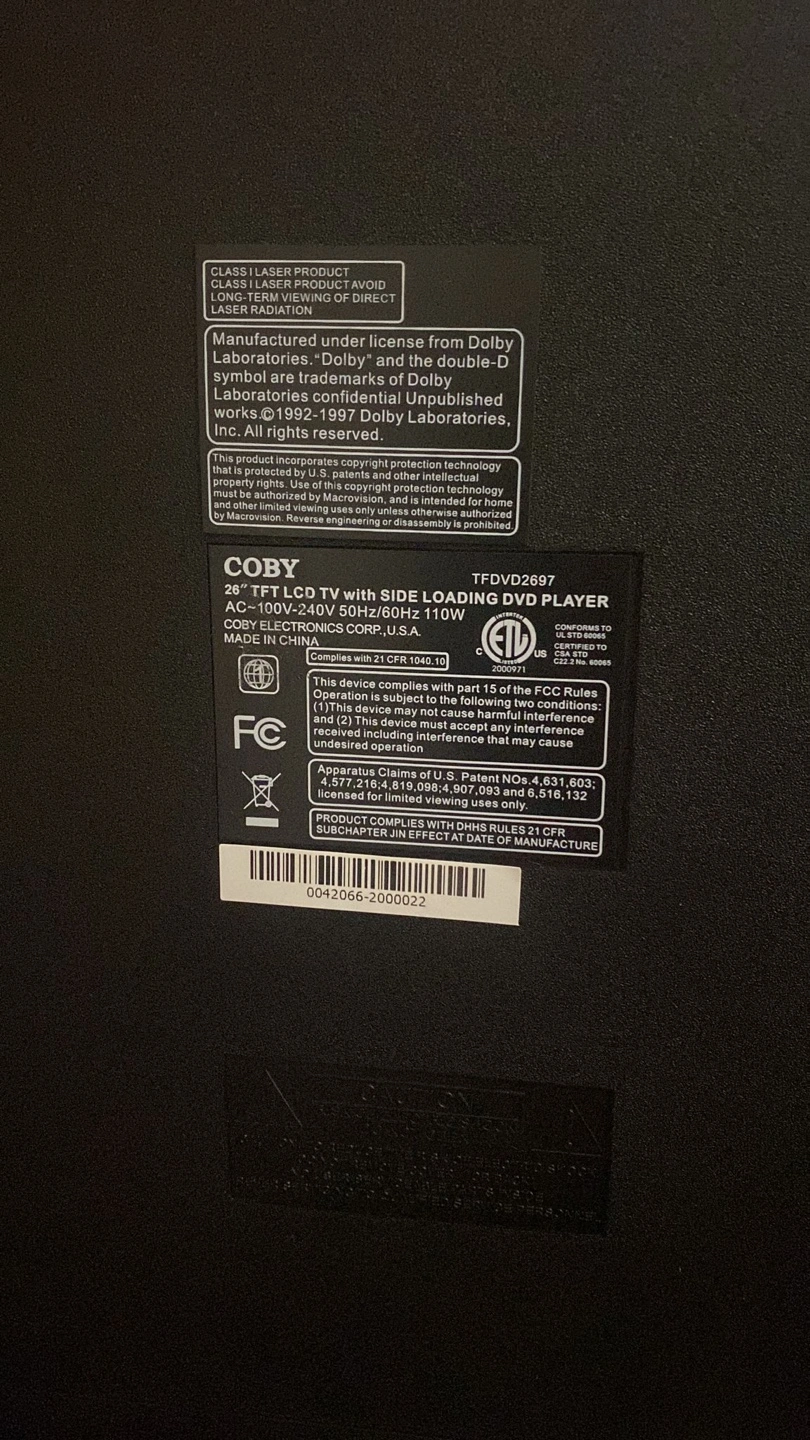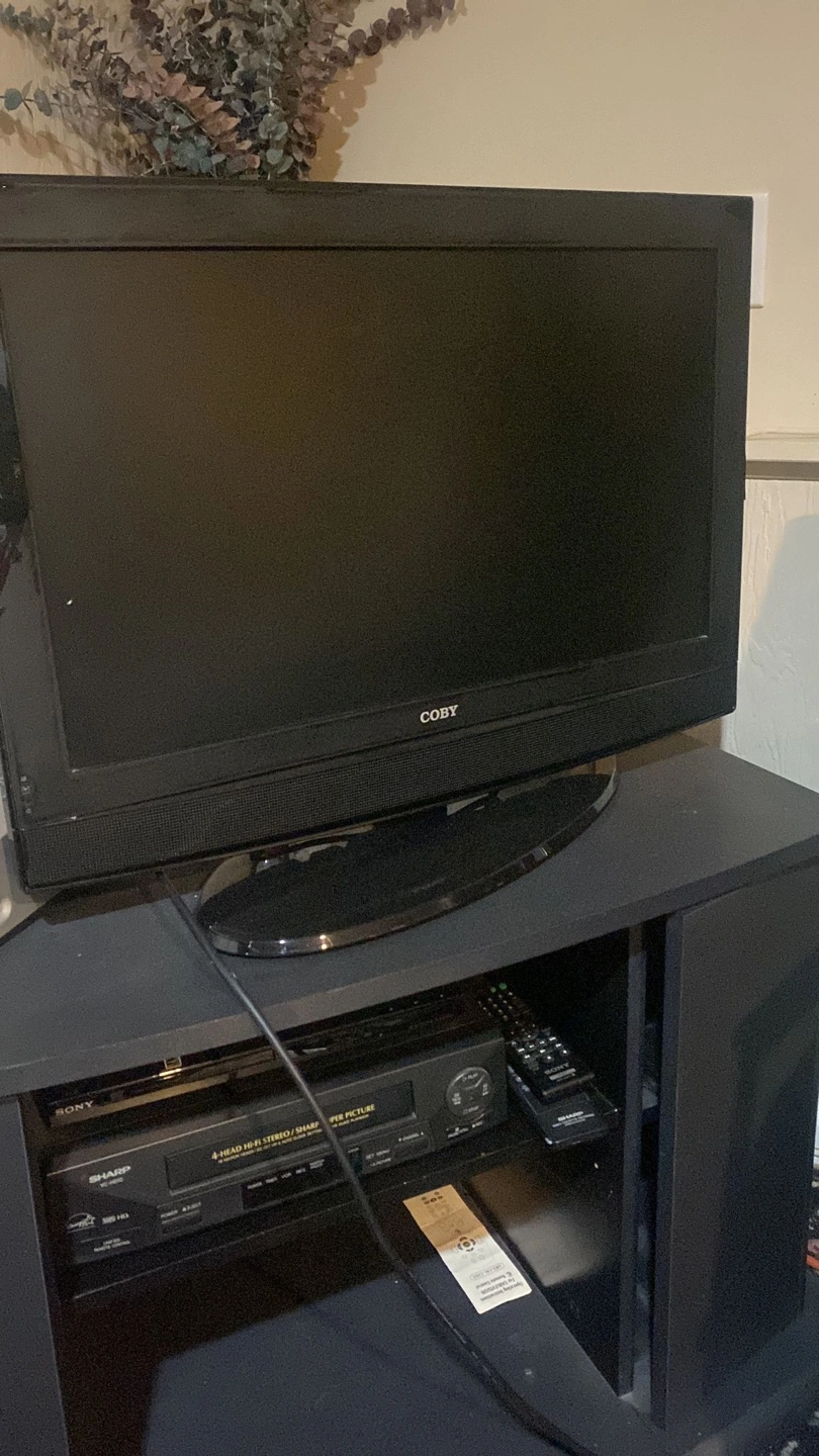 Selling a Coby 26" TFT LCD TV with a side loading DVD player. It's in good condition and ready for a new home. It is a 26-inch TFT LCD TV with a side-loading DVD player