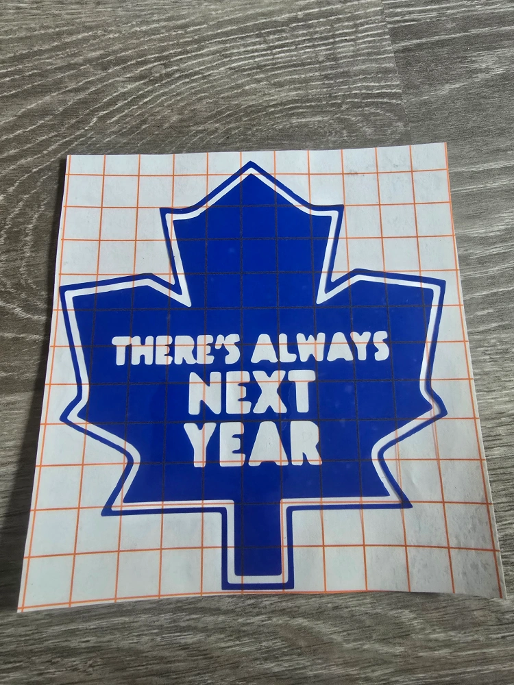 blue, 6 inch wide "There's Always Next Year"Toronto Maple Leafs Parody decal