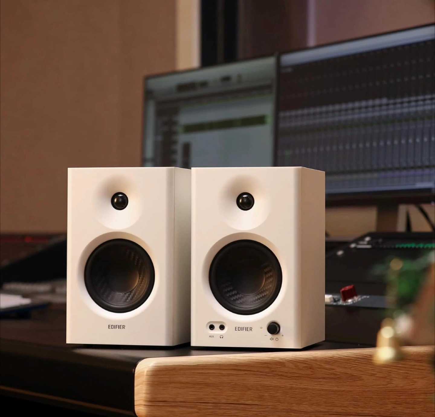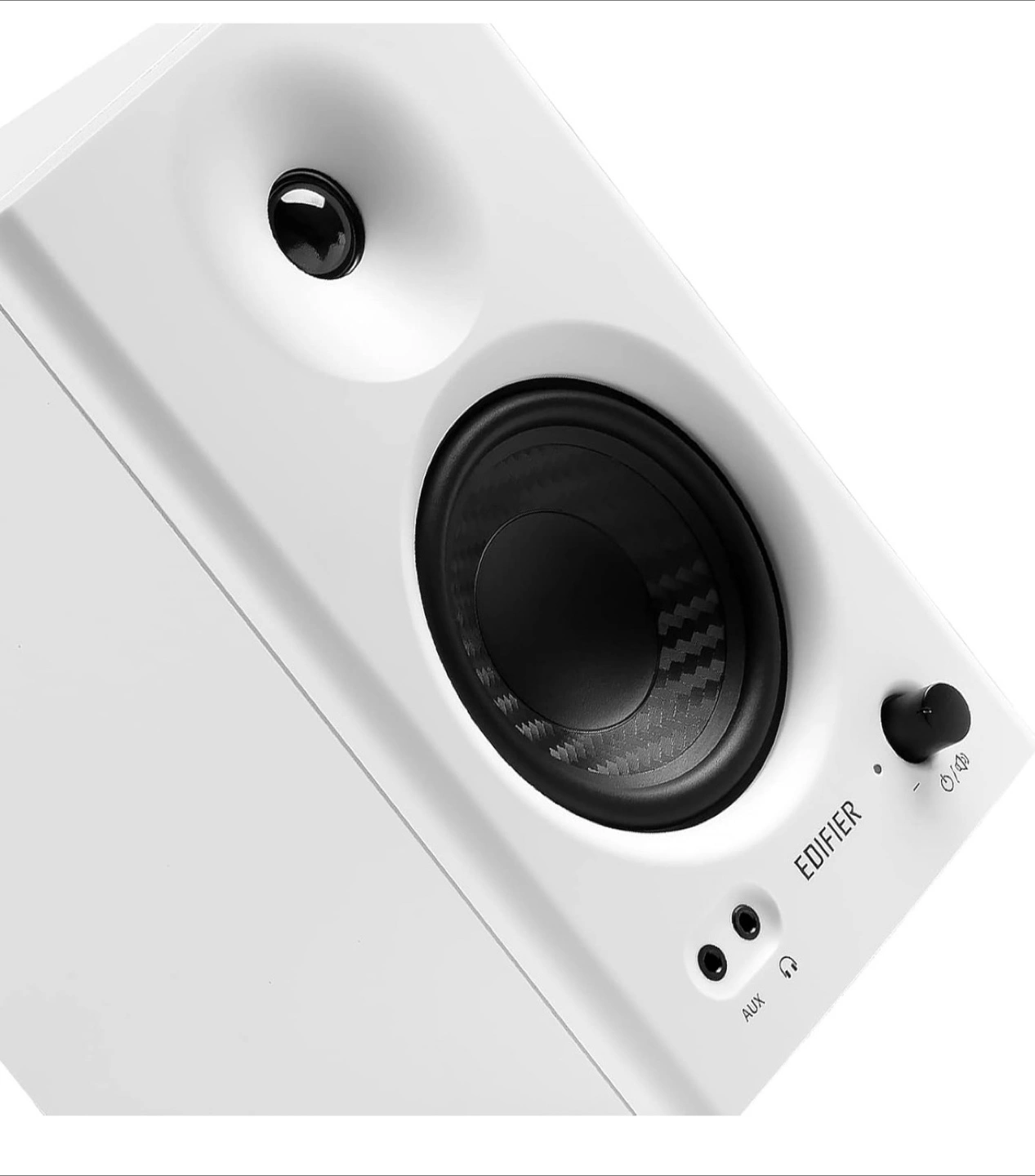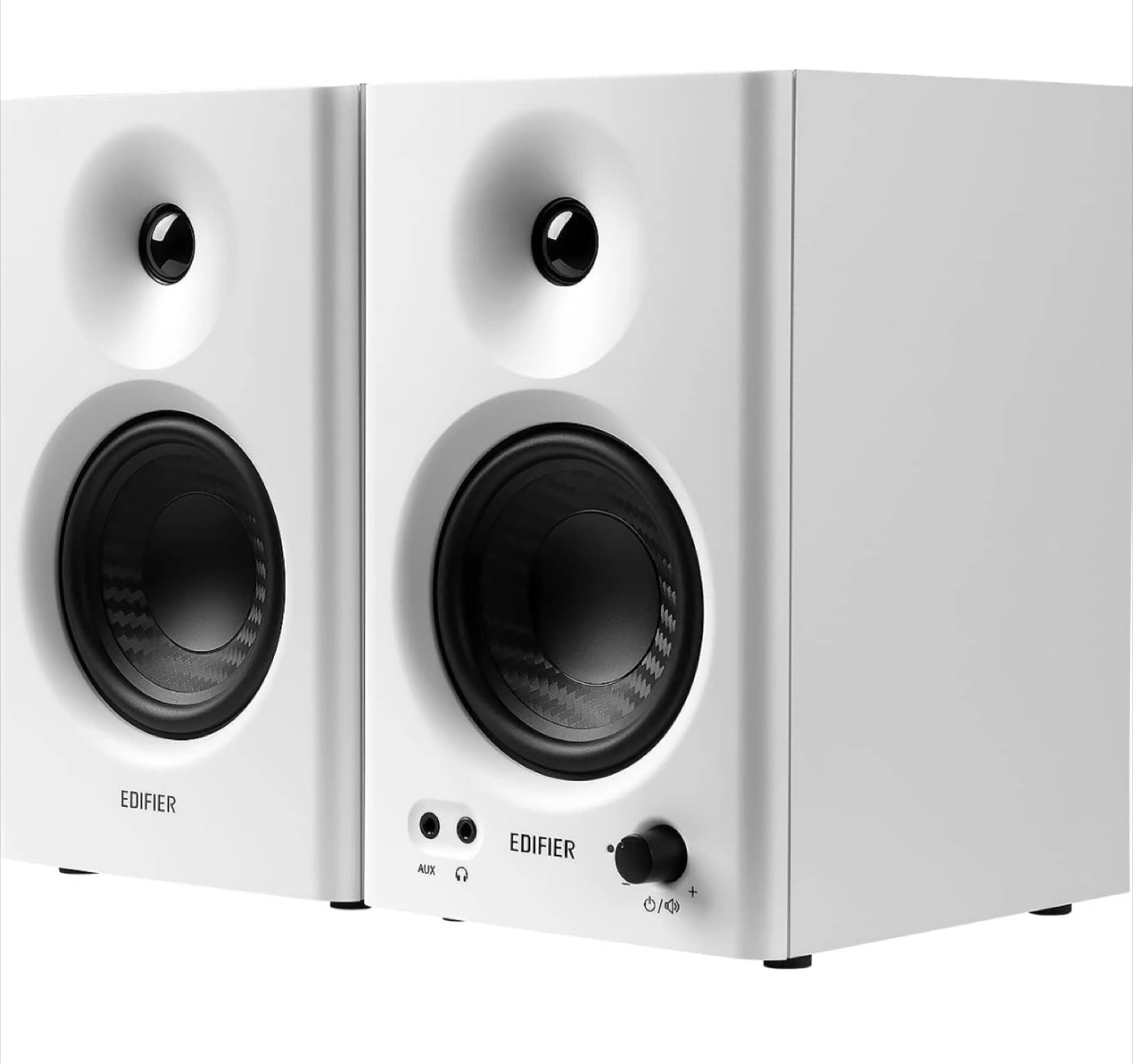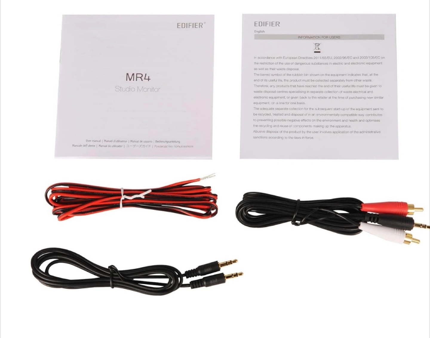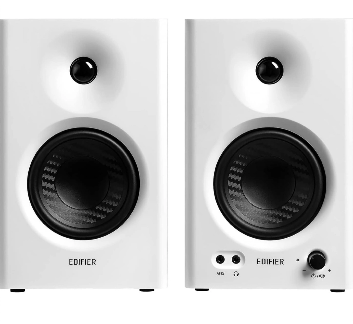 Selling a pair of Edifier MR4 studio monitor speakers in white. They are in great condition and come with all the original cables and the user manual. Perfect for a home studio or just listening to music!