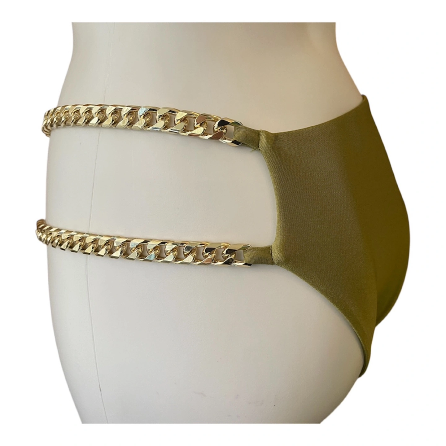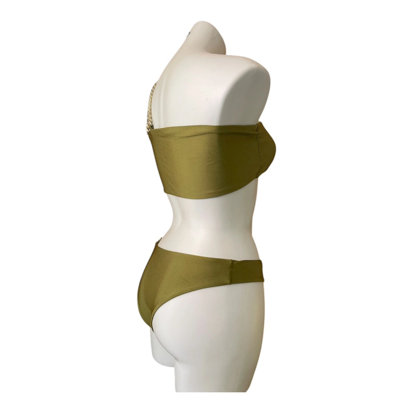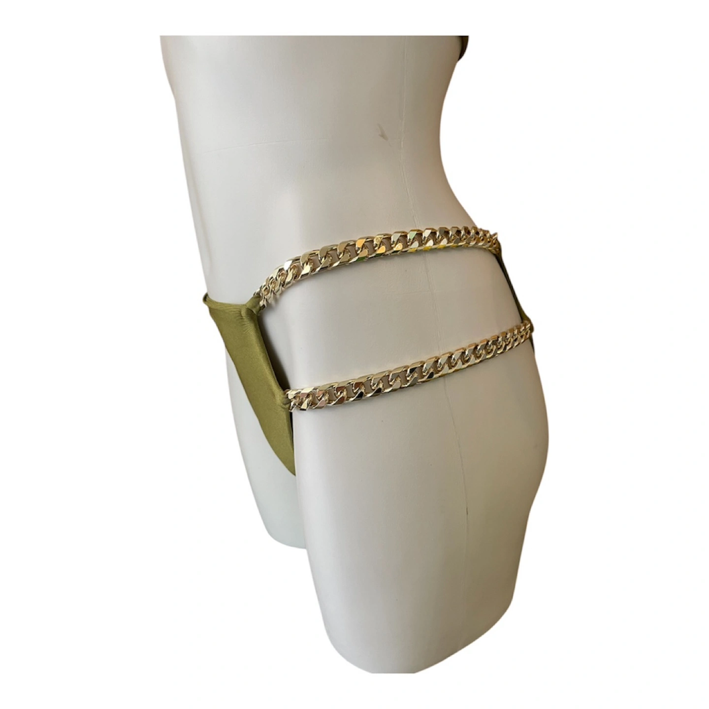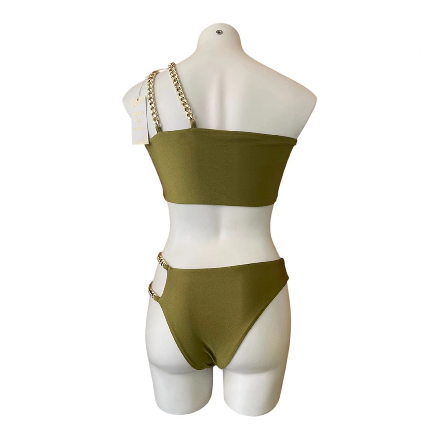 NWT Green Bikini Two Piece Set Cheeky Bottoms Gold Chain Embellishments Medium