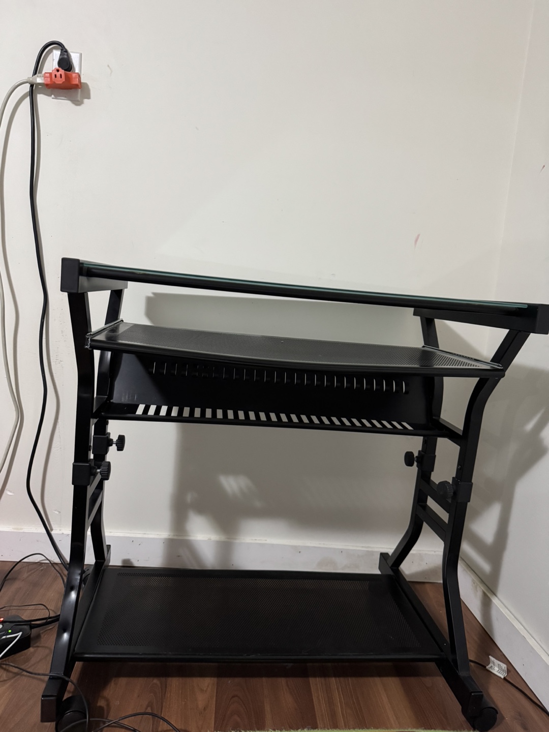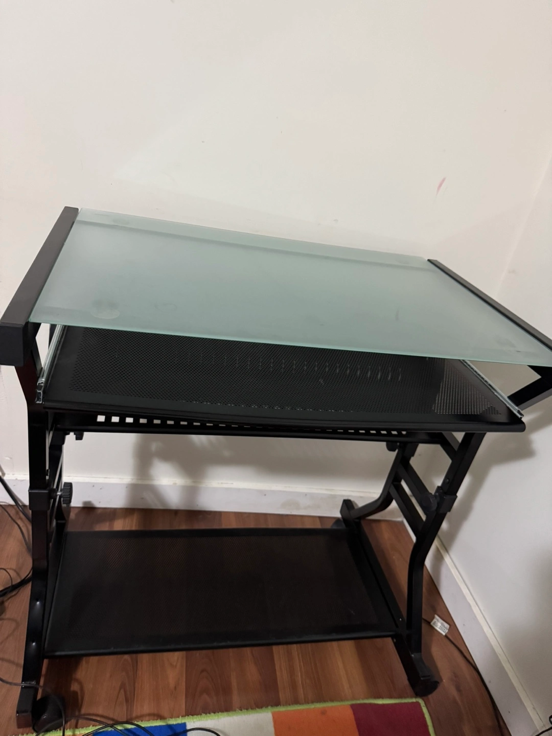 Selling a black metal computer desk with a glass top. Dimensions; 31 inches length, 21 inches width and 32 inches height. Pick up at east 53rd knight street Vancouver area. Cash only.
