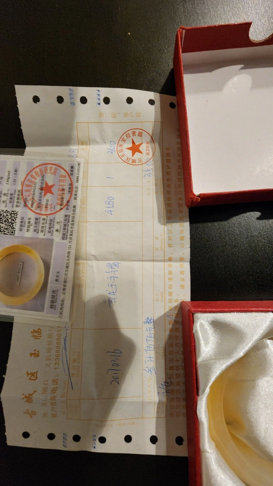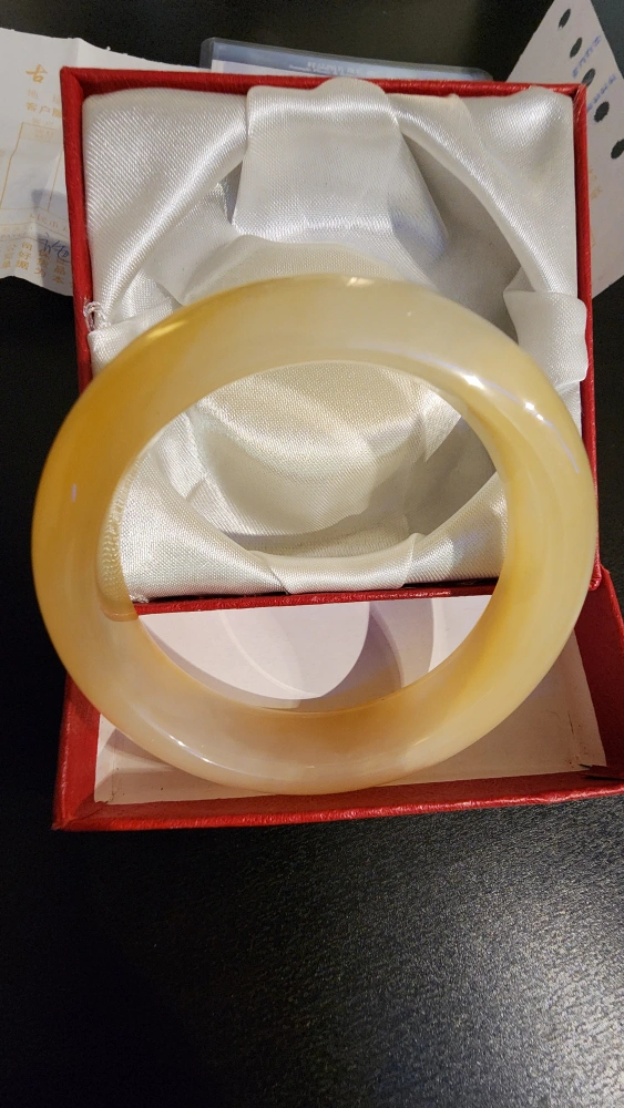 Yellow Dragon Jade Bracelet, sold by a notable Chinese jewelery brand. comes with original receipt (purchased in 2018 for ¥3500 CNY, $667 in CAD), and certificate.