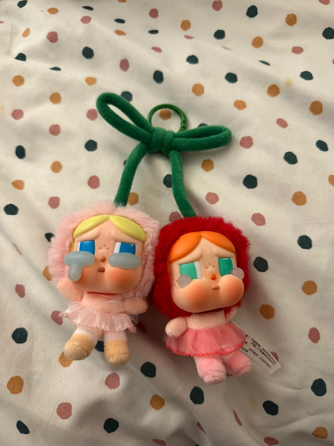 Selling a cute pair of Pop Mart CryBabies (the cherry ones)They're in great condition and ready to add some charm to your bag or keys!