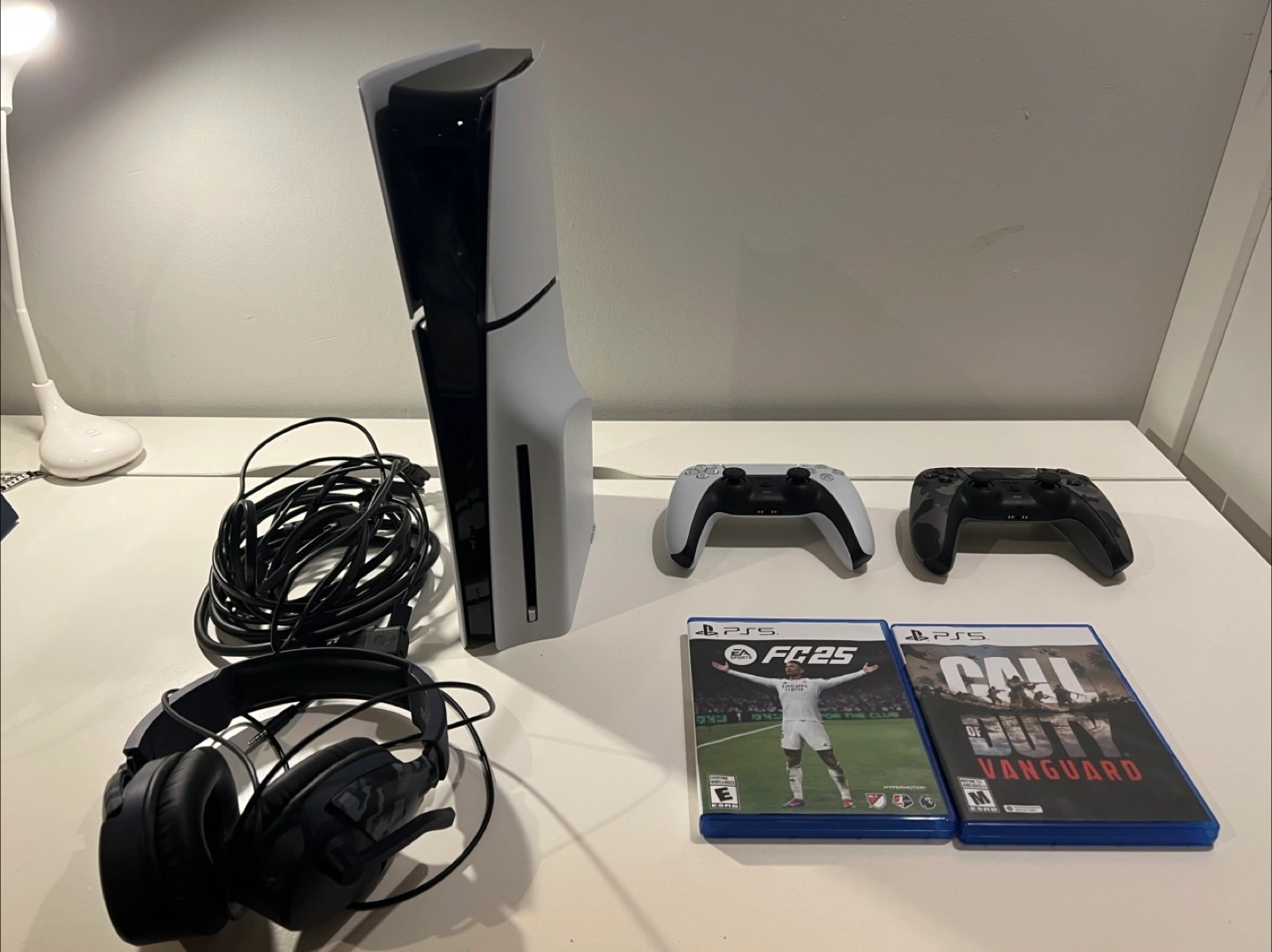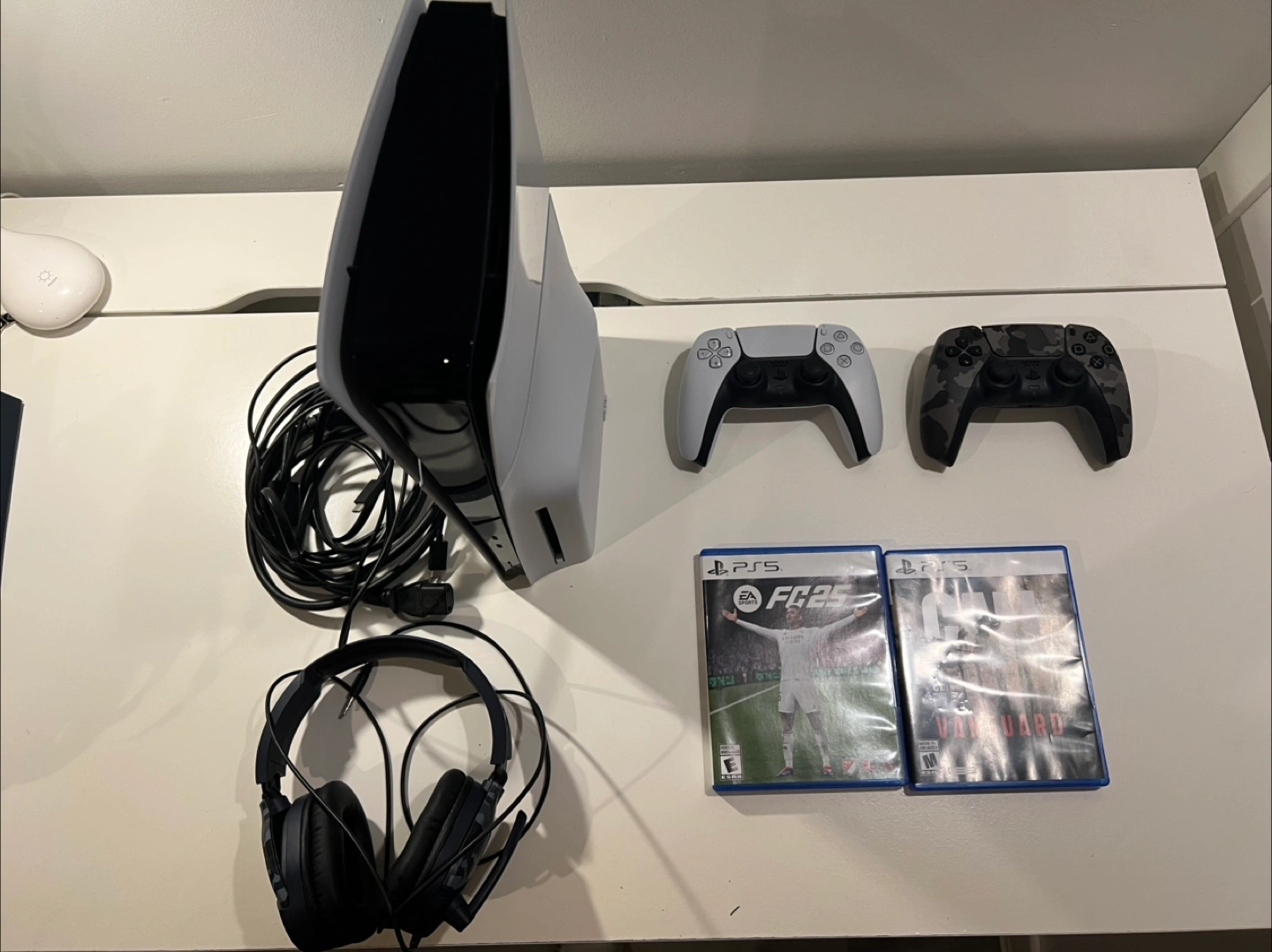 1TB PS5 Disc and 2 Controllers + 2 Games and Headset For Sale.