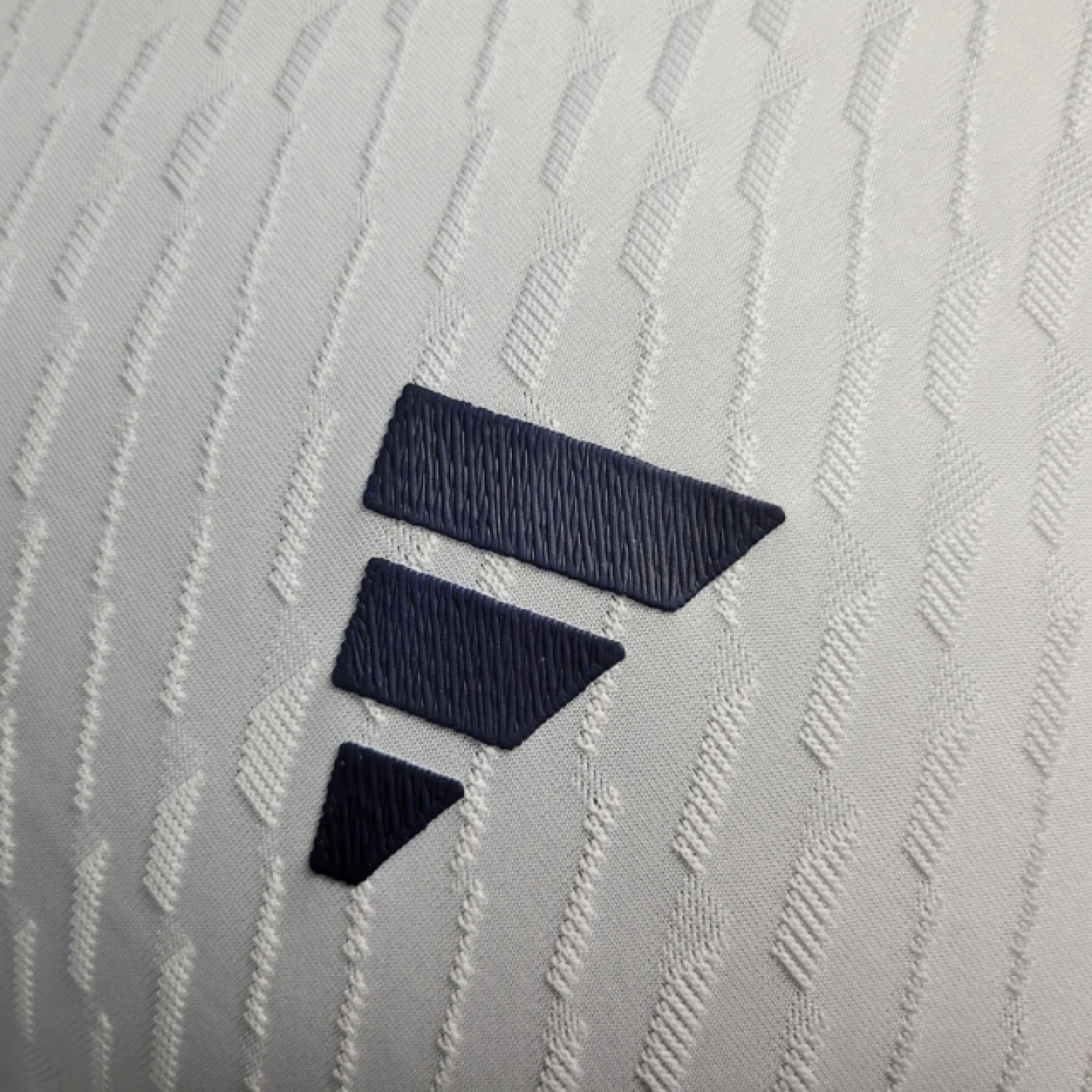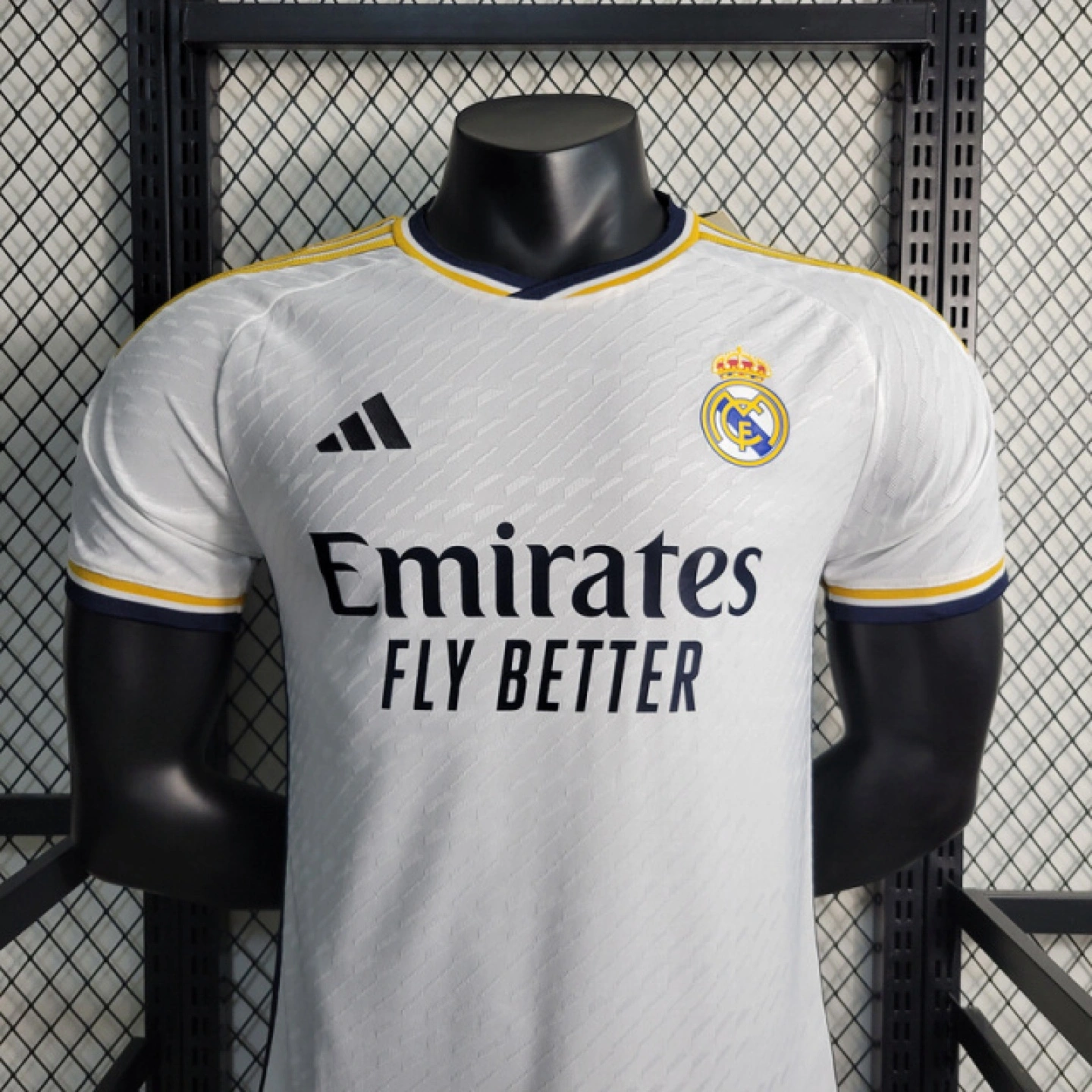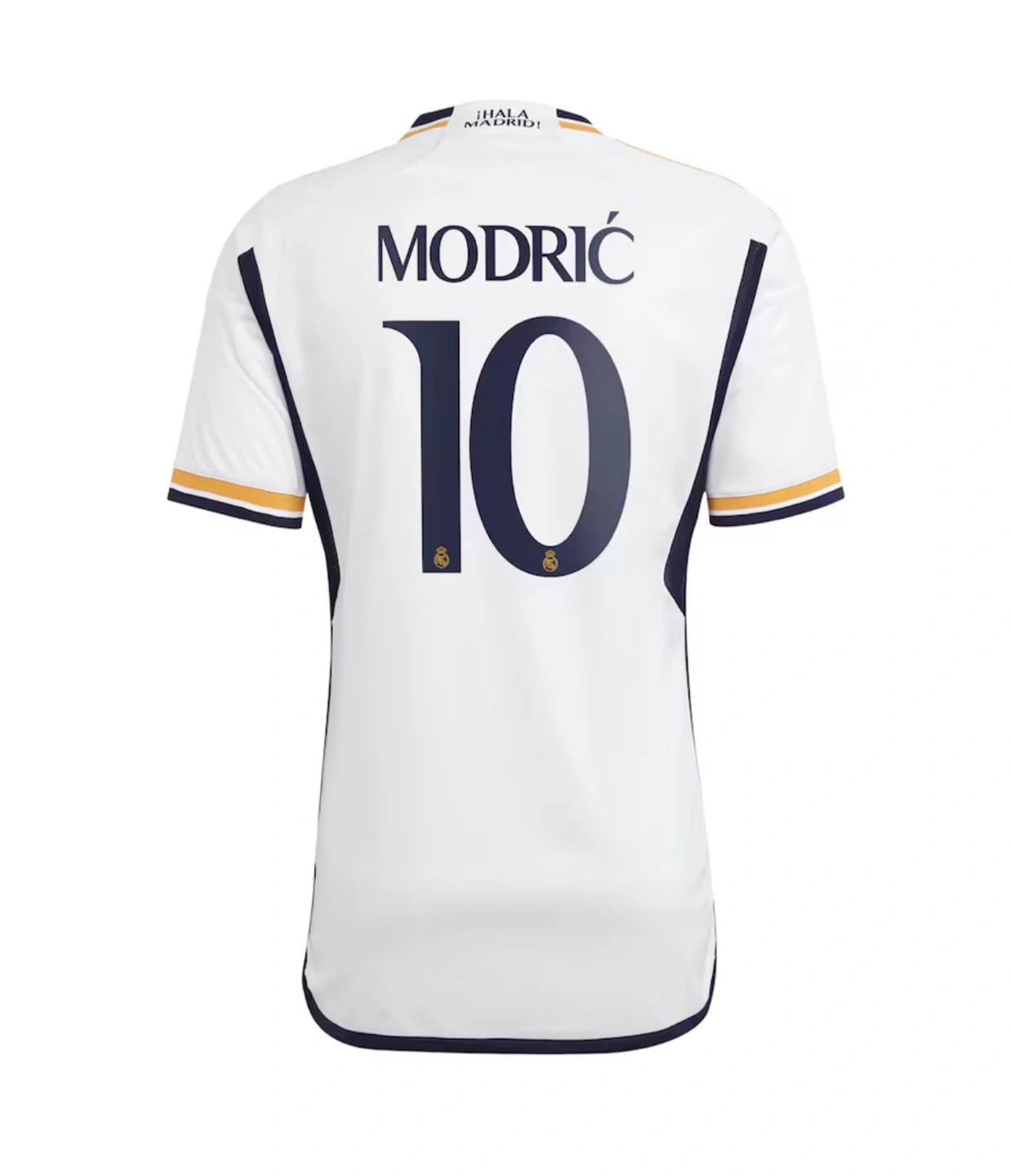 Selling a Real Madrid jersey from the 2023/2024 season made by Adidas. The jersey is white with the Real Madrid logo on the chest. ¡Hala Madrid!