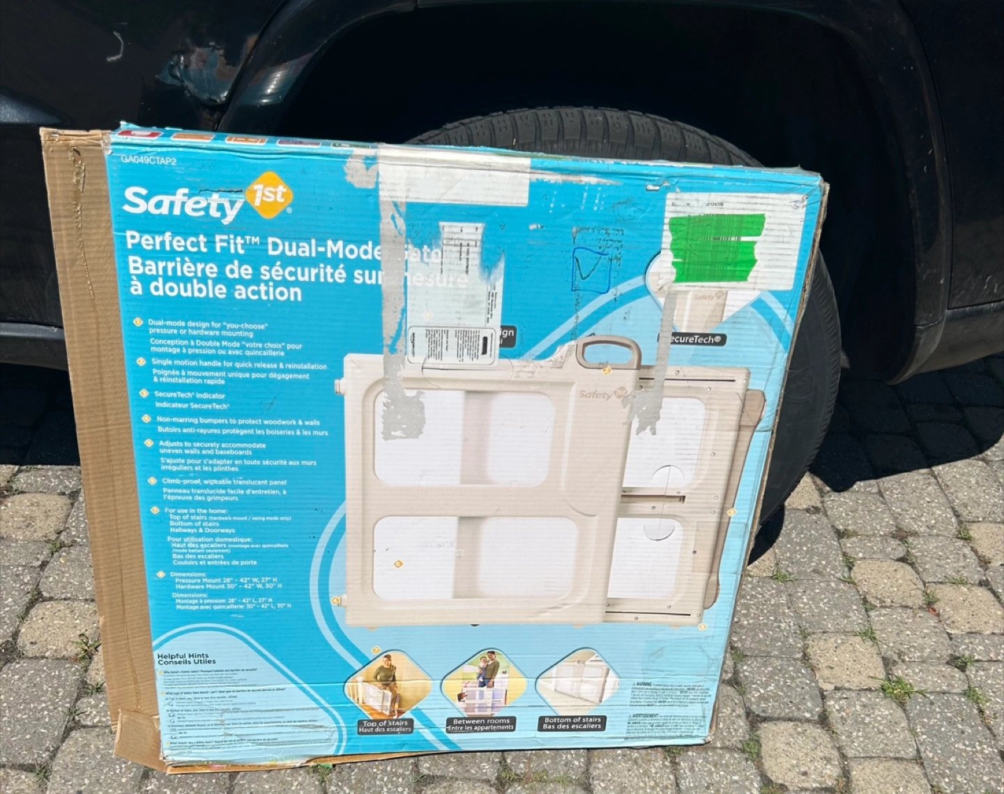 Selling a Safety 1st Perfect Fit Dual-Mode Gate. It's a barrier de securite sur mesure a double action. Great for top of stairs, between rooms, or bottom of stairs. It features a securetech indicator.
